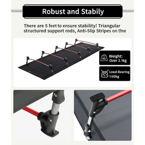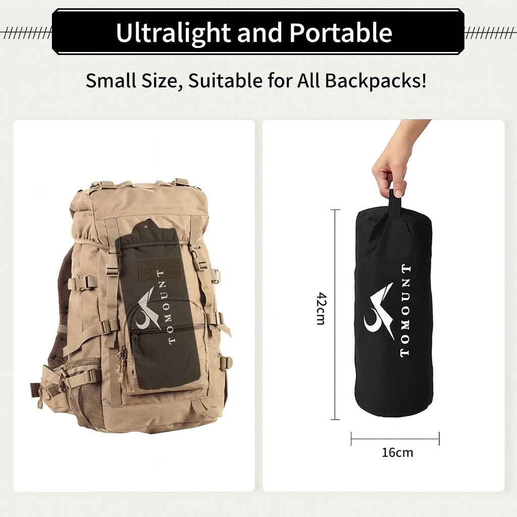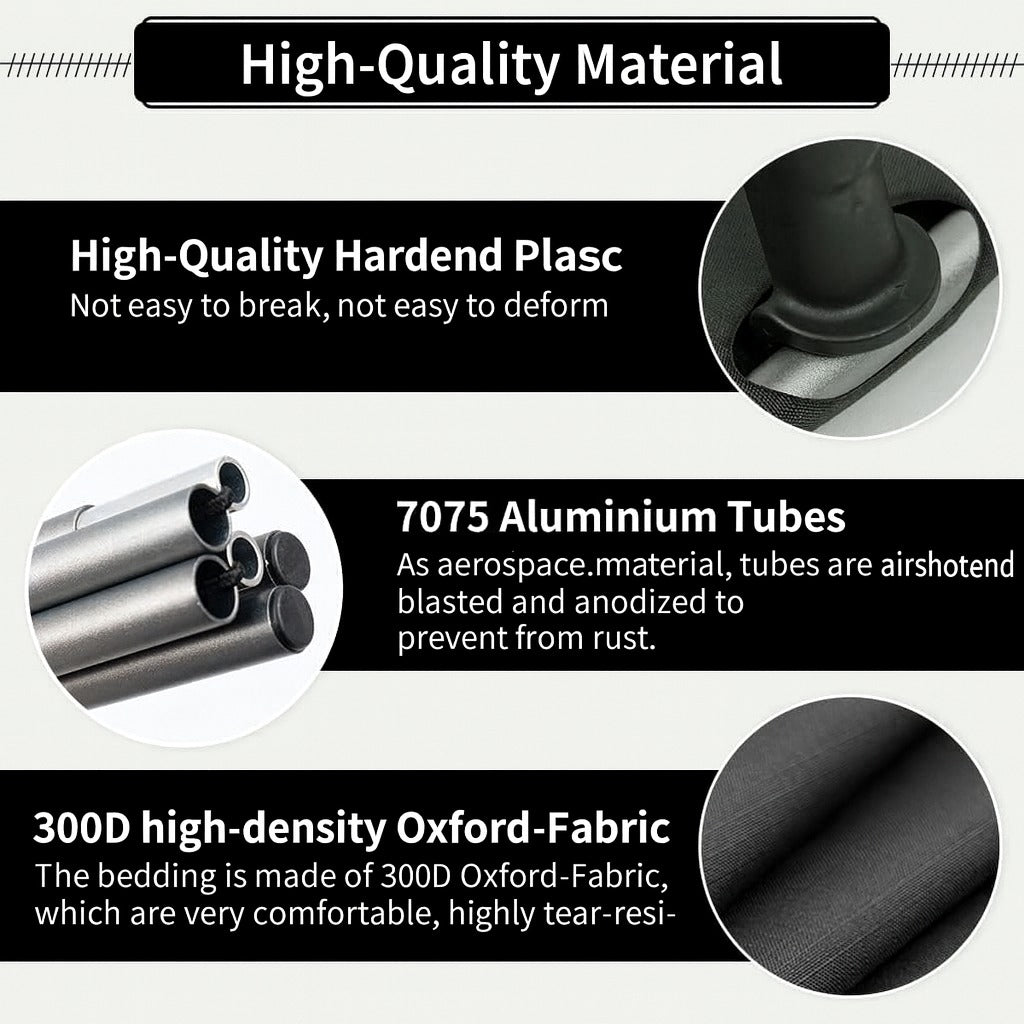 Pat pliabil camping TOMOUNT, ultralight, aluminiu, 190x70 cm, 150 kg, portabil cu husa transport, negru