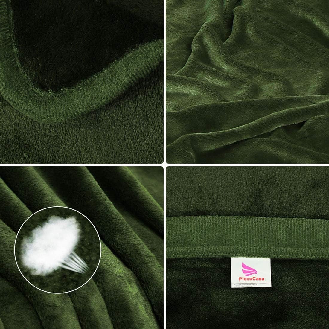 Patura fleece PiccoCasa, 200x230cm, microfibra, 330 GSM, usoara si calduroasa, verde