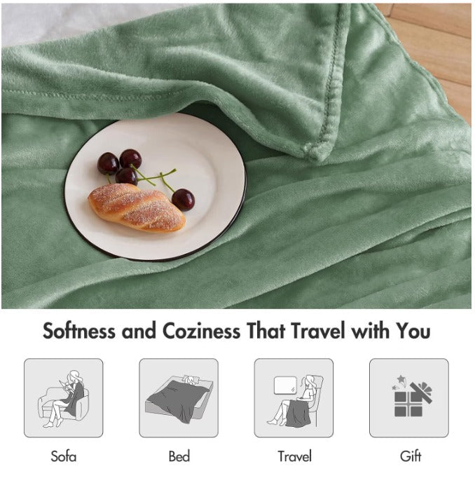 Patura moale si pufoasa MIULEE, din fleece, pentru Canapea, Pat, Dormitor, Birou sau Calatorii, 130 x 150 cm, culoare Verde