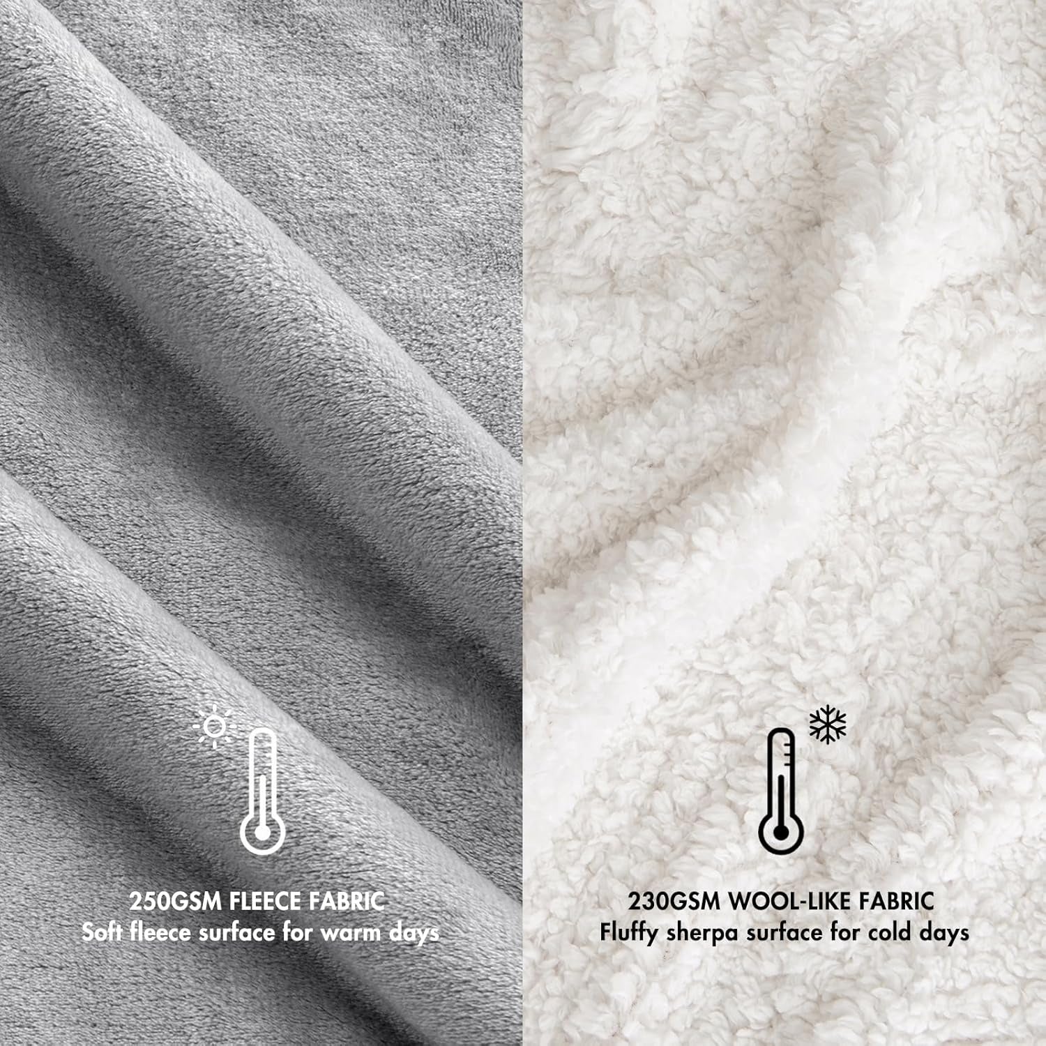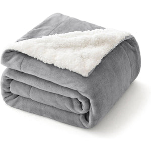 Patura Pufoasa MIULEE, Groasa, Sherpa, Lana, cu Dungi, 130 x 150 cm, culoare Gri si Alb