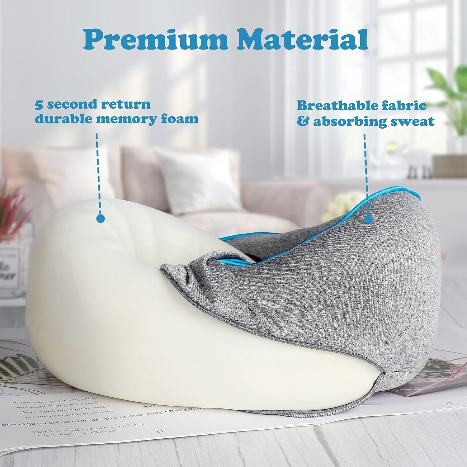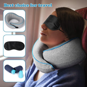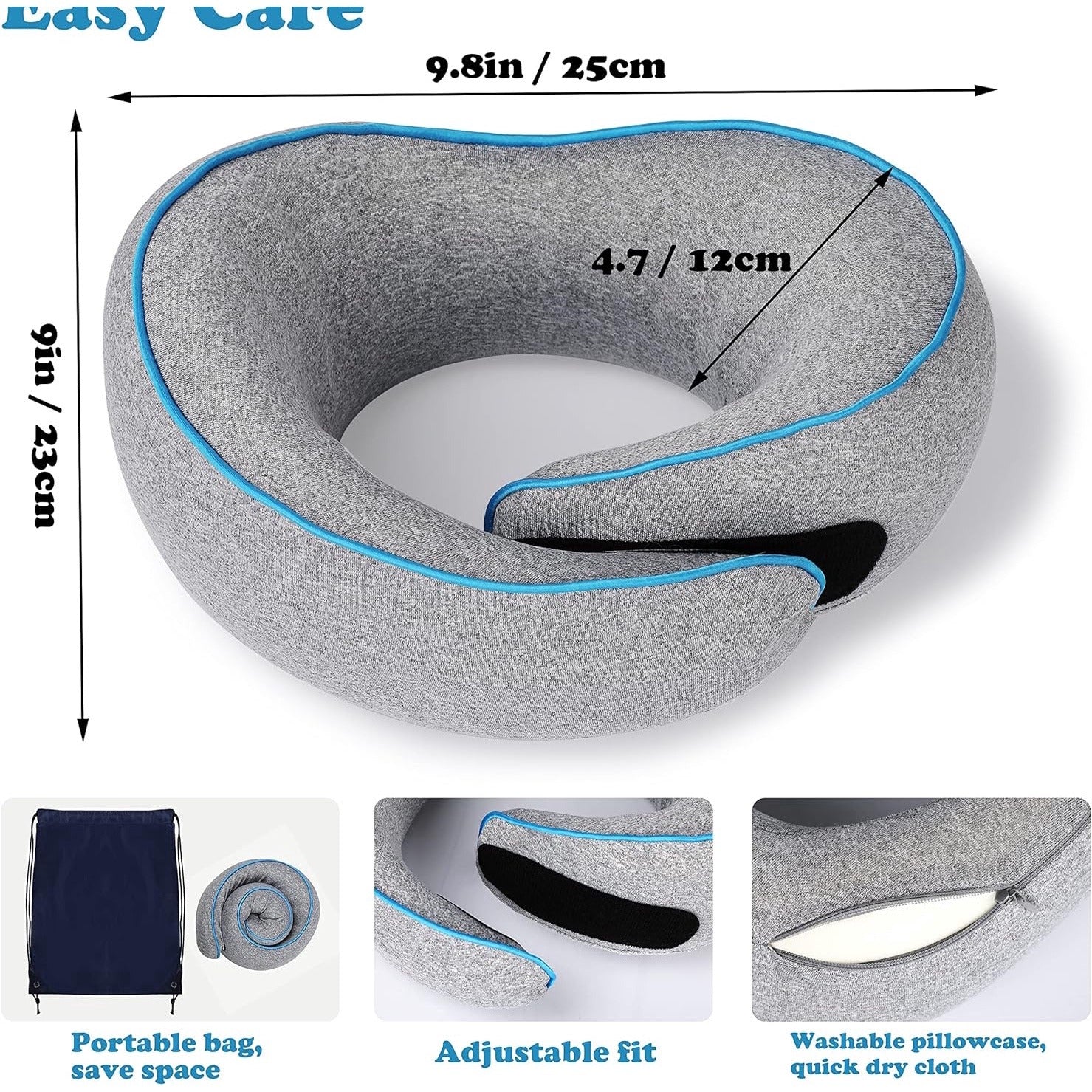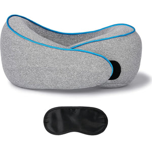 Perna de calatorie OUGE, spuma cu memorie, confortabila, respirabila, Set cu masca de ochi si sac pentru transport, culoare Gri