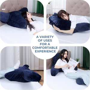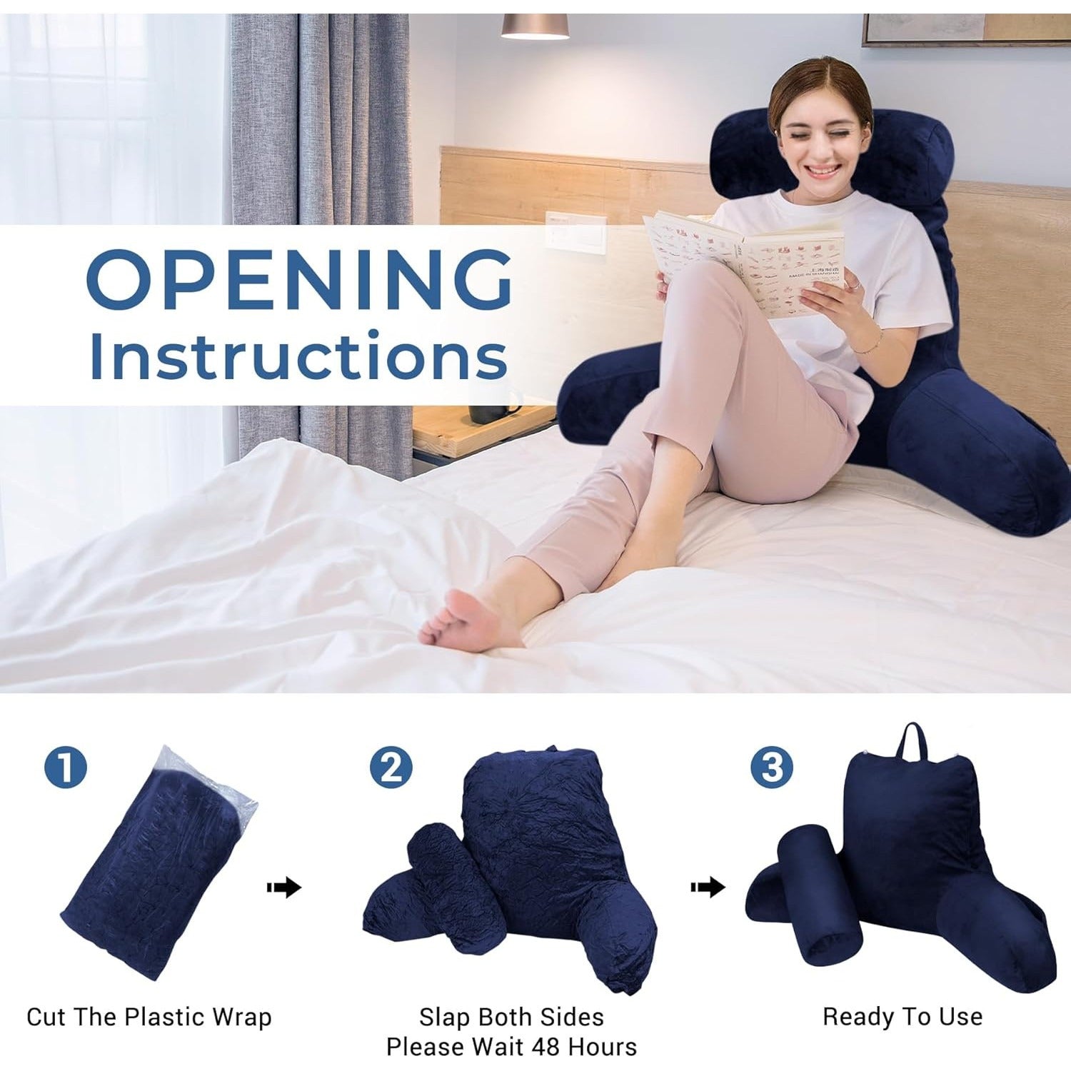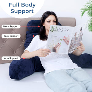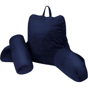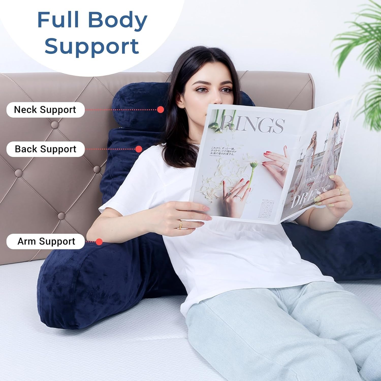 Perna de citit pentru pat, INFANZIA, 68 cm, spatar cu brate si tetiera, husa detasabila lavabila, albastru marin