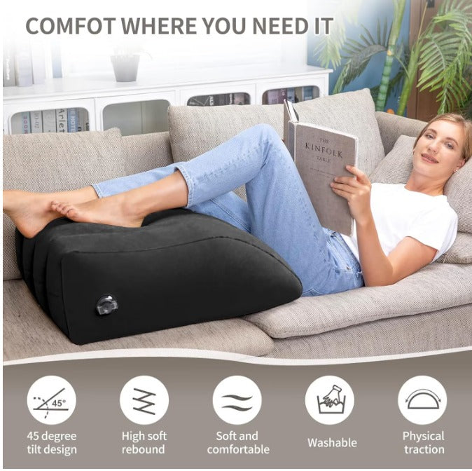 Perna pentru Ridicarea Picioarelor SAHEYER, 63.5 x 50.8 x 24 cm, Gonflabila pentru Reducerea Umflaturilor, Portabila, culoare Negru
