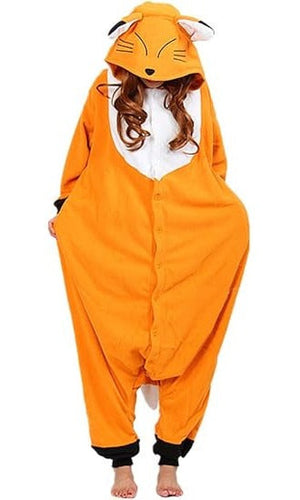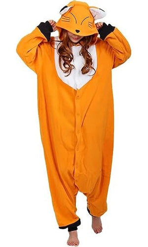 Pijama onesie Wotogold, marimea L, unisex, model animal, fleece, culoare portocaliu