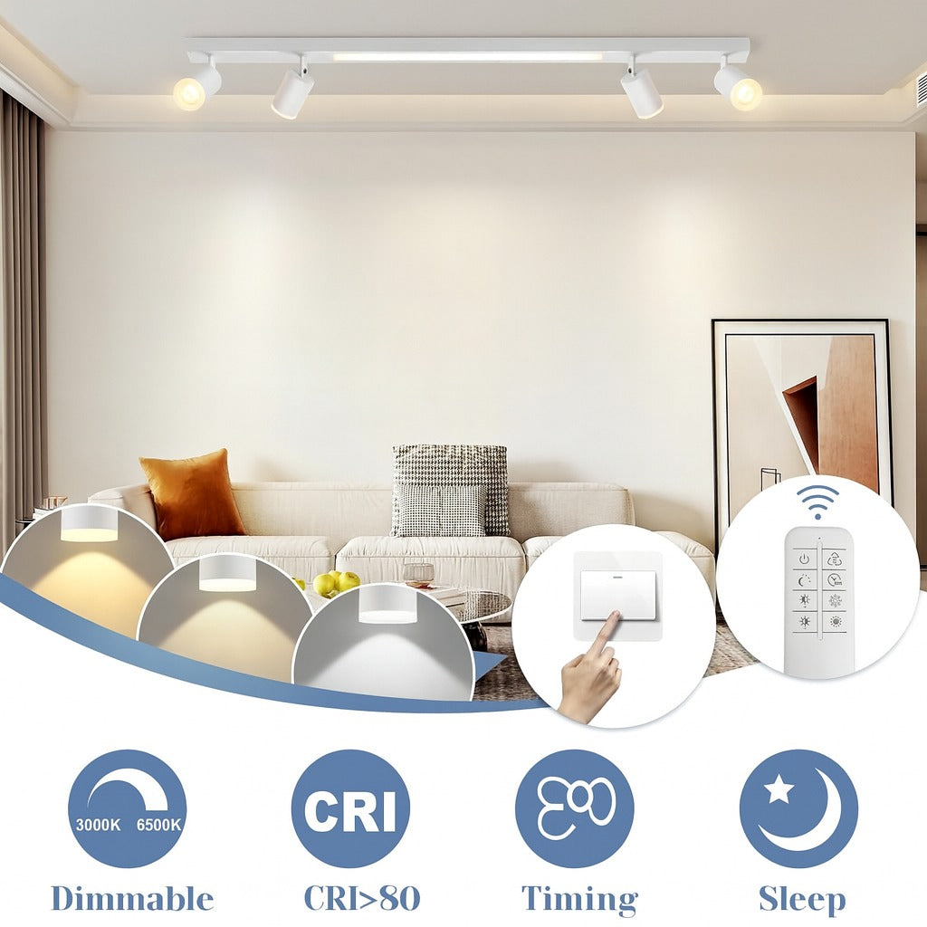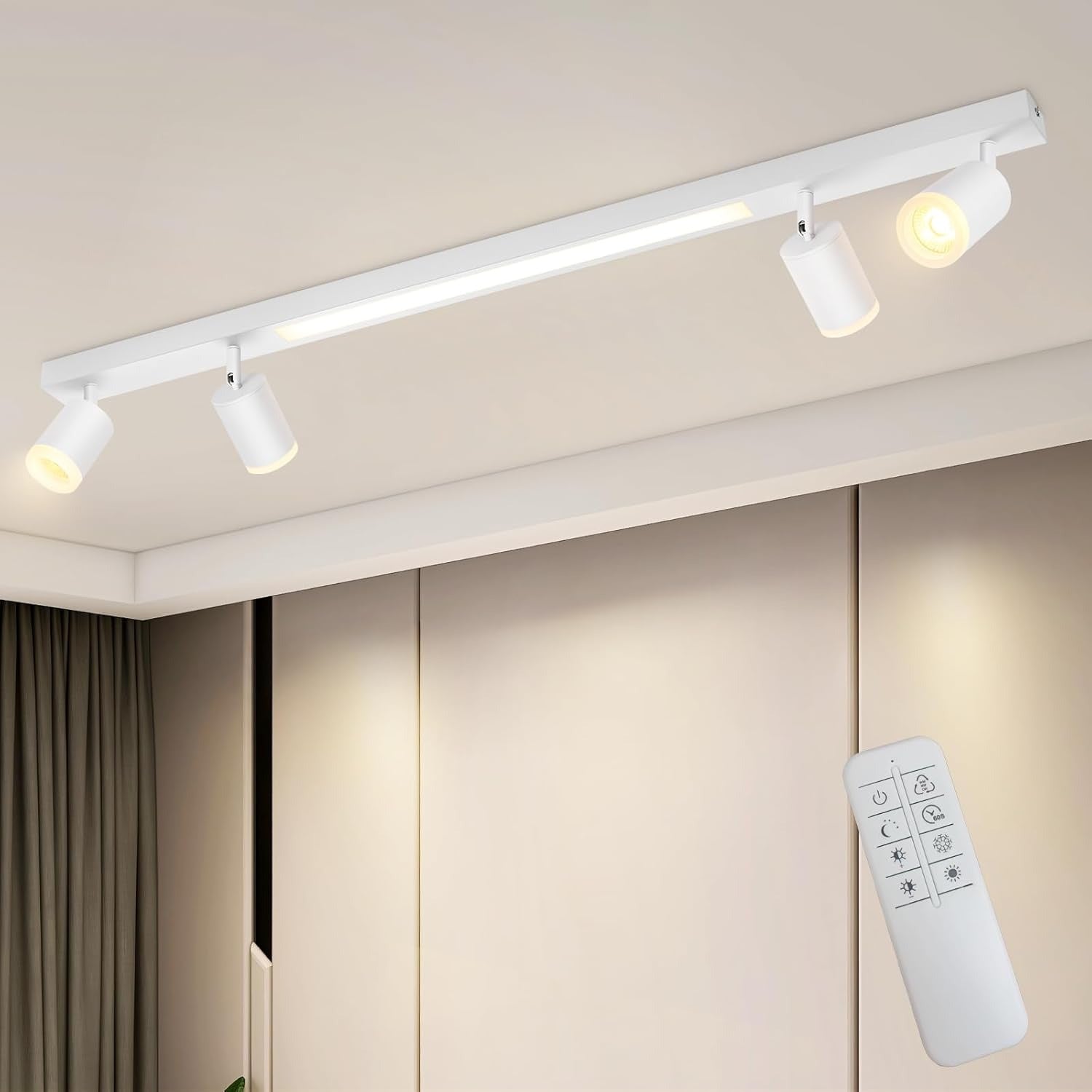 Plafoniera LED CUPGOW, 4 Spoturi, 38W, Dimabila, Telecomanda, 3000K-6500K, Rotatie 350°, Design Modern, Alba