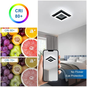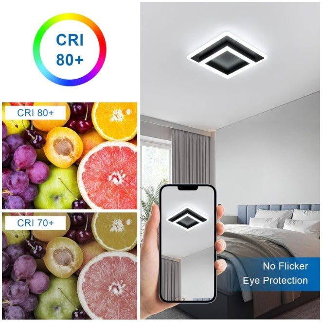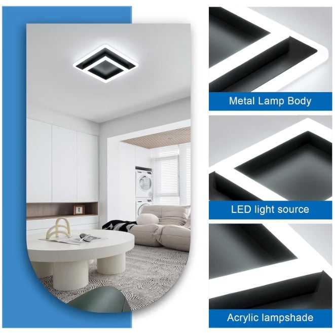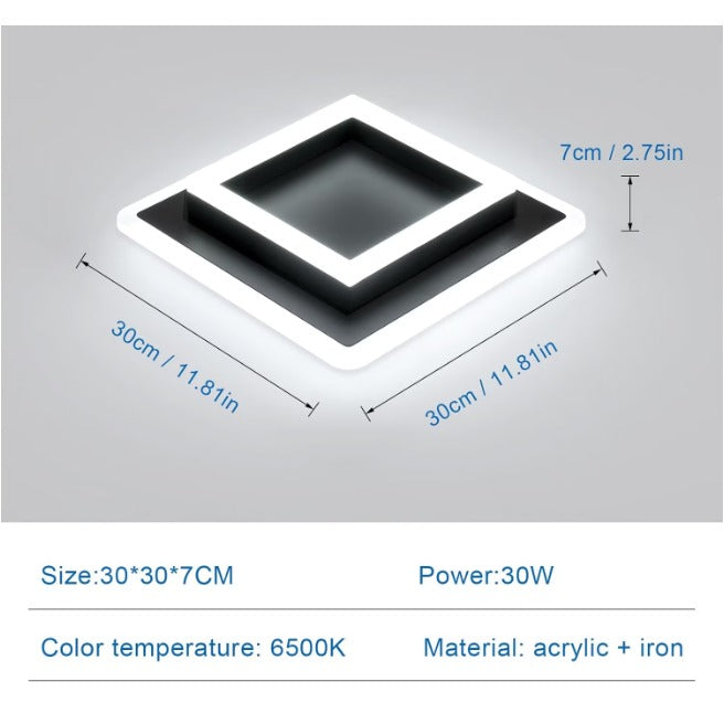 Plafoniera LED SENQIU, moderna, patrata, 30W, 3375 lm, lumina rece 6500K, 30x30x7 cm, acril si metal, negru, CRI 80+, neagra
