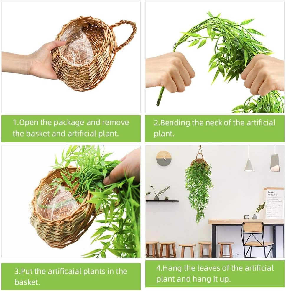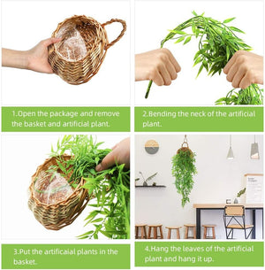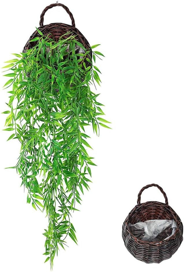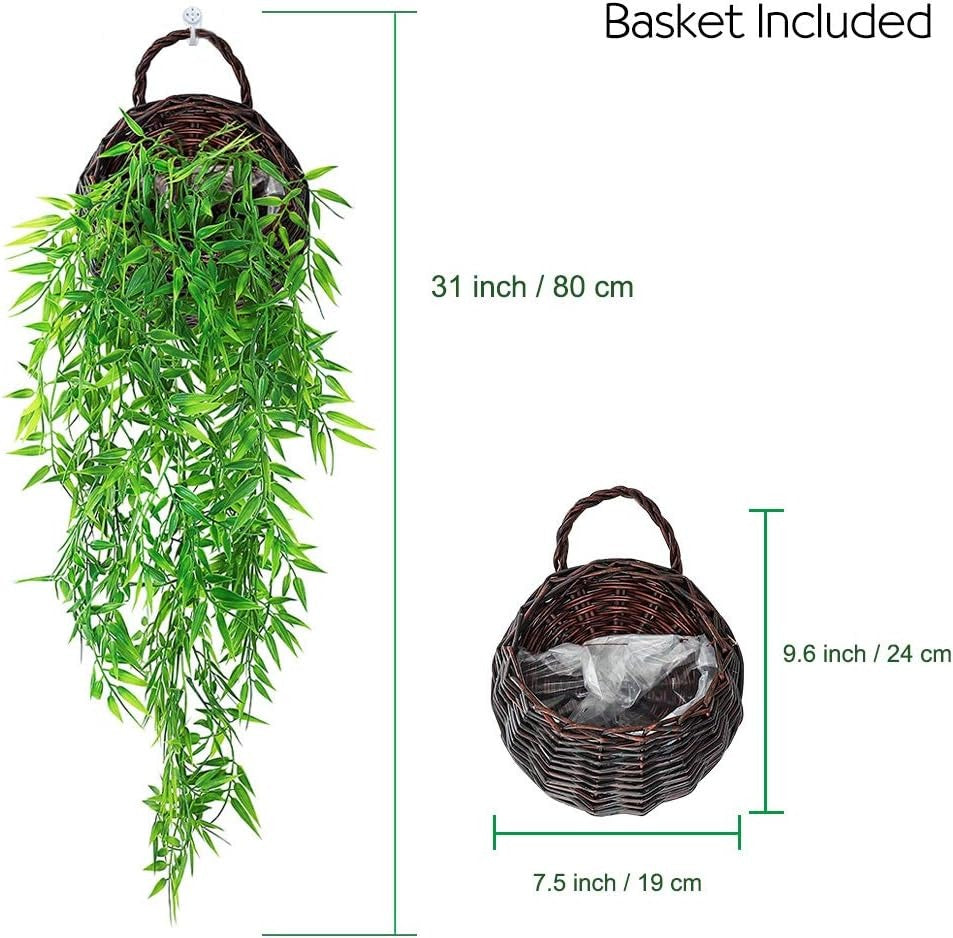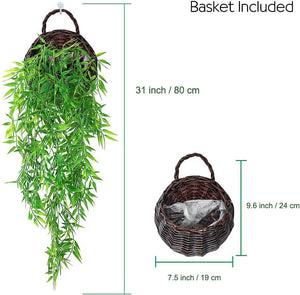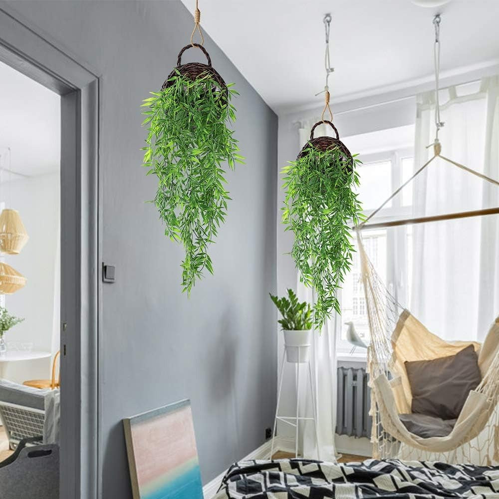 Planta artificiala suspendata ANZOME, 80 cm, frunze de bambus, cos inclus, verde/negru