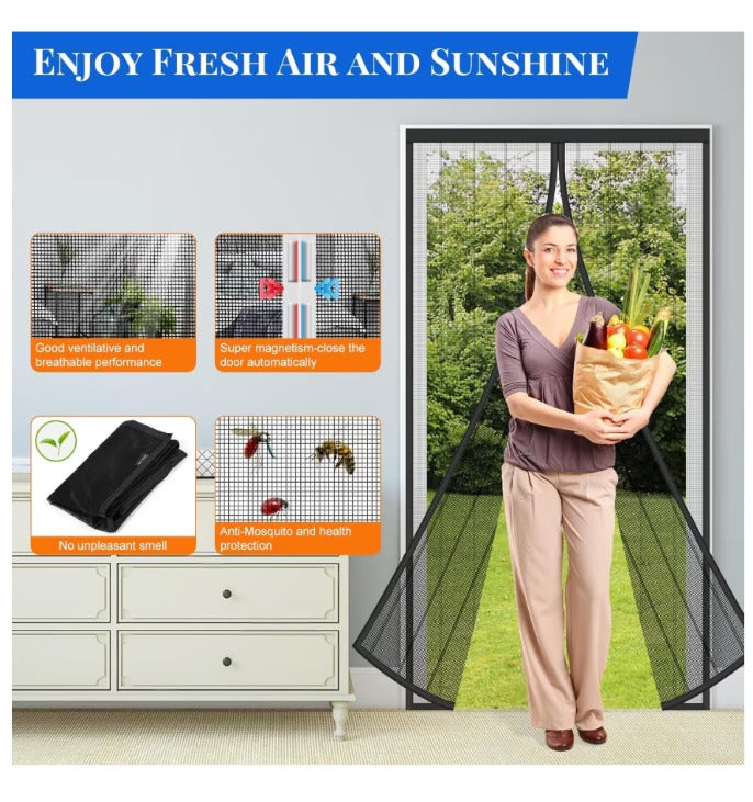 Plasa Magnetica Usa MYCARBON, 90x240 cm, Fibra de Sticla, Inchidere Automata cu Magneti Puternici, Montaj Fara Gauri, Rezistenta si Lavabila, Negru