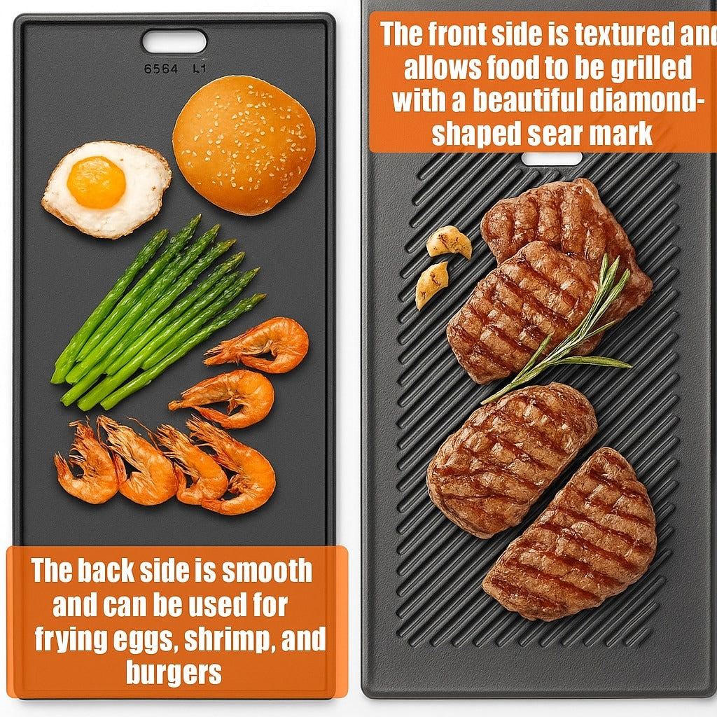 Plita universala GFTIME, 45x24 cm, fonta, dreptunghiulara, antiaderenta, culoare negru
