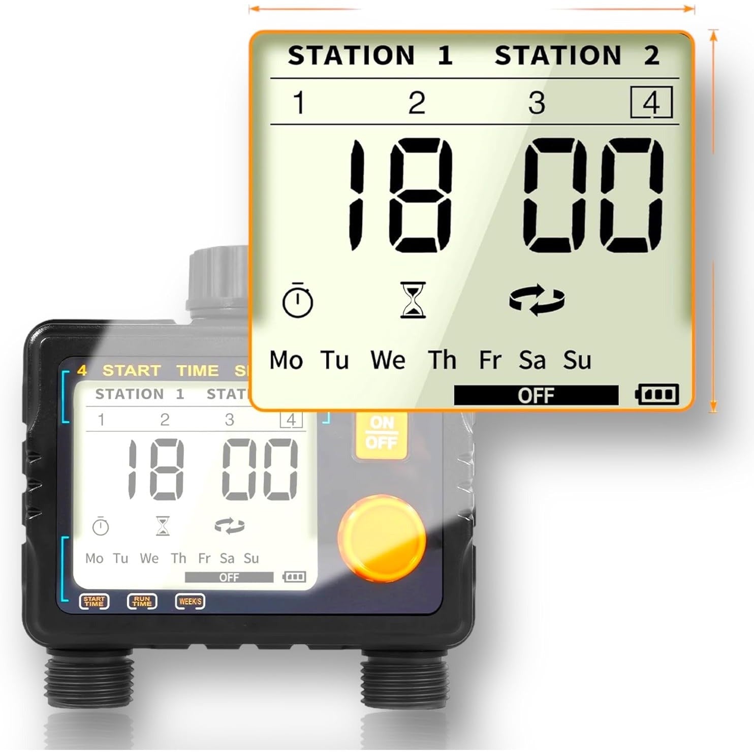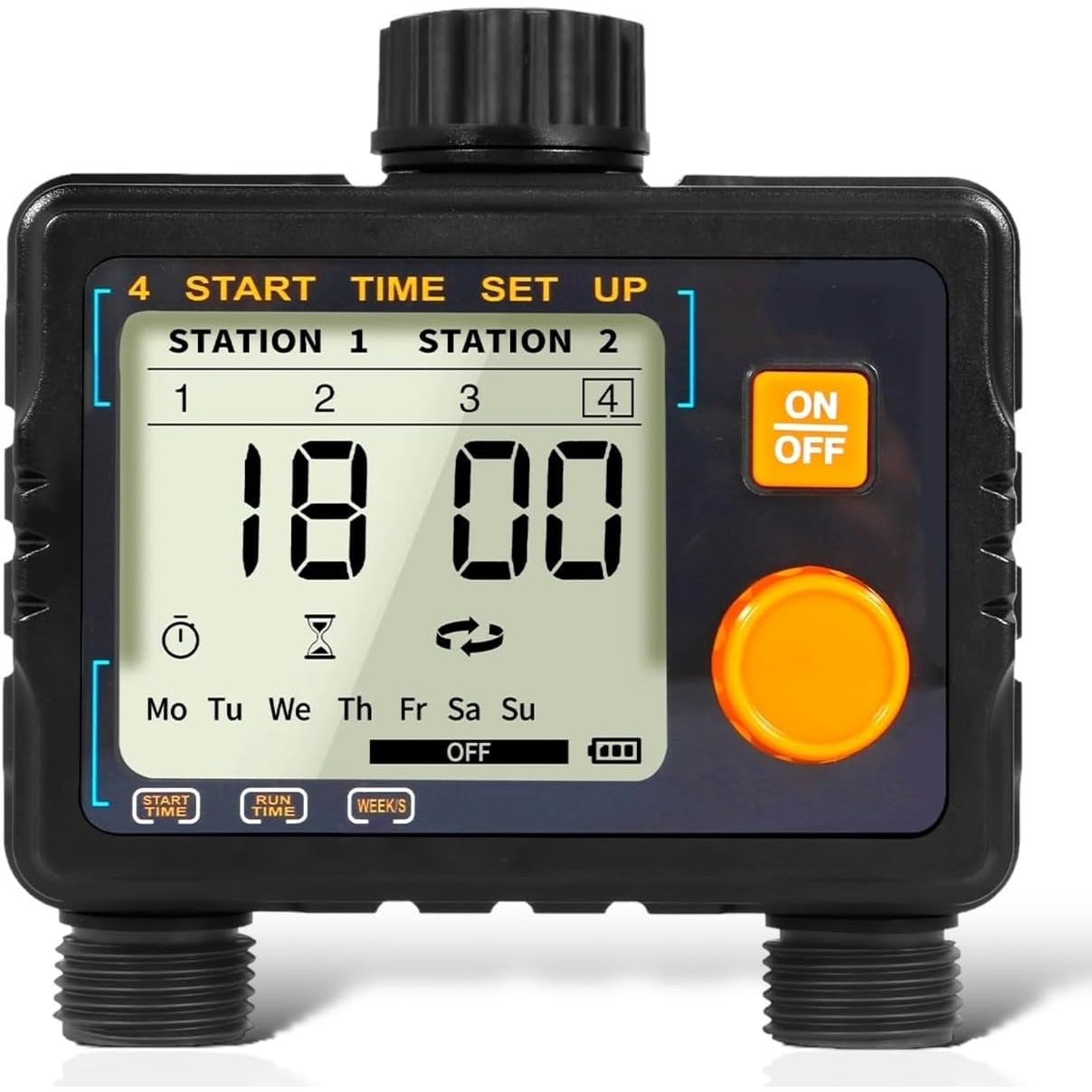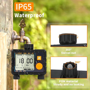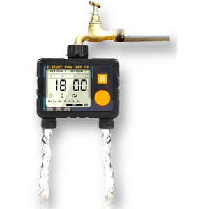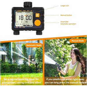 Programator Irigare Rainfactory, Digital, 2 Iesiri, 4 Programe, IP65, Senzor Ploaie, Blocare Copii, Udare Automata si Manuala, LCD, 3.5x6.5 cm, albastru