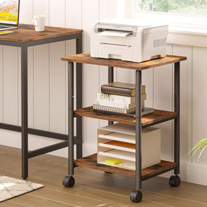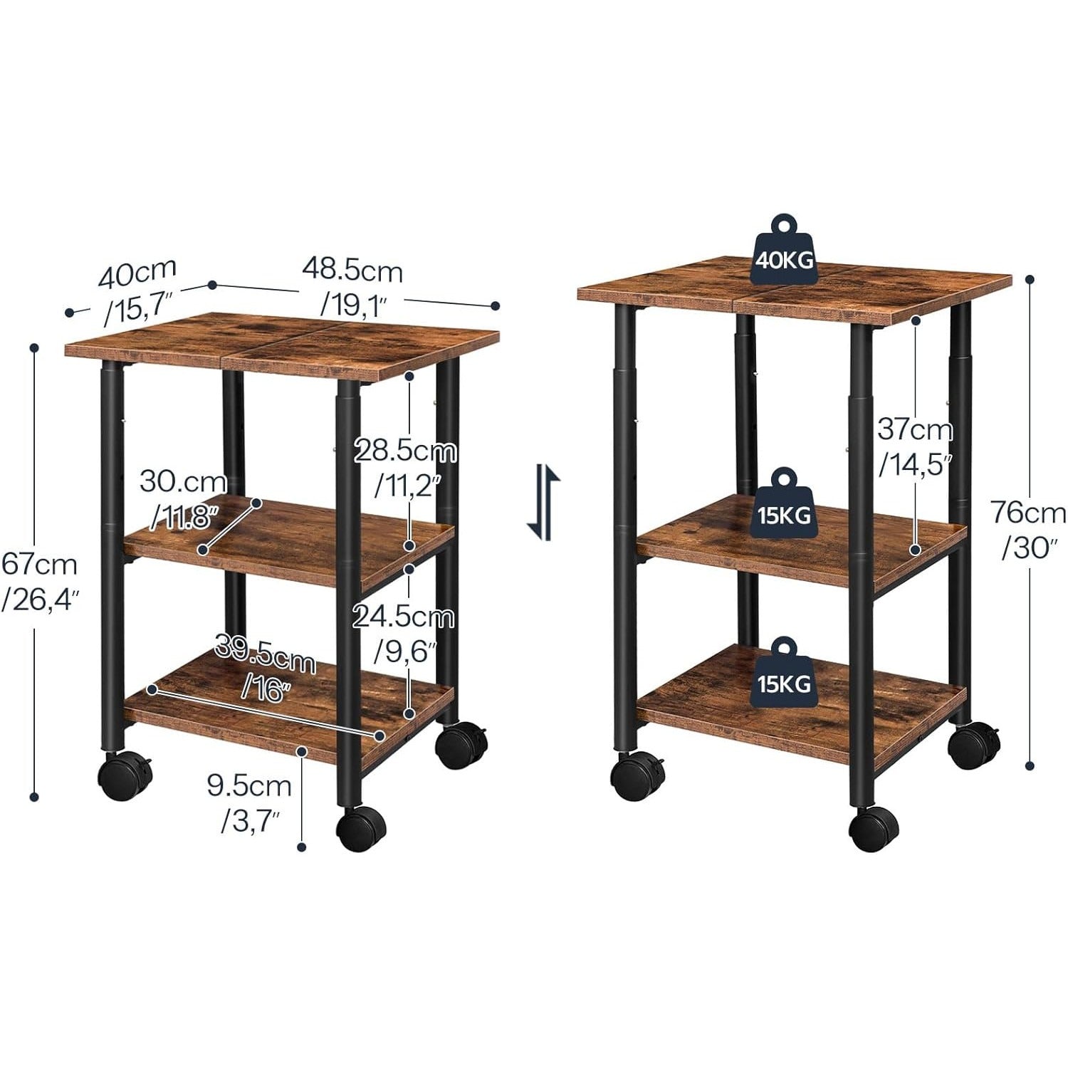 Raft multifunctional HOOBRO, 3 rafturi si roti, 48.5x40x76 cm, ajustabil, max 88 kg, culoare maro rustic si negru