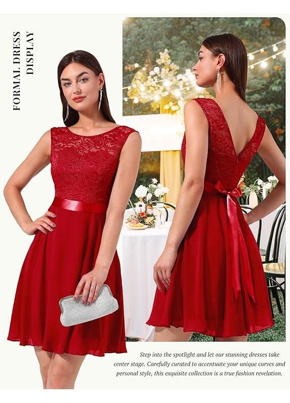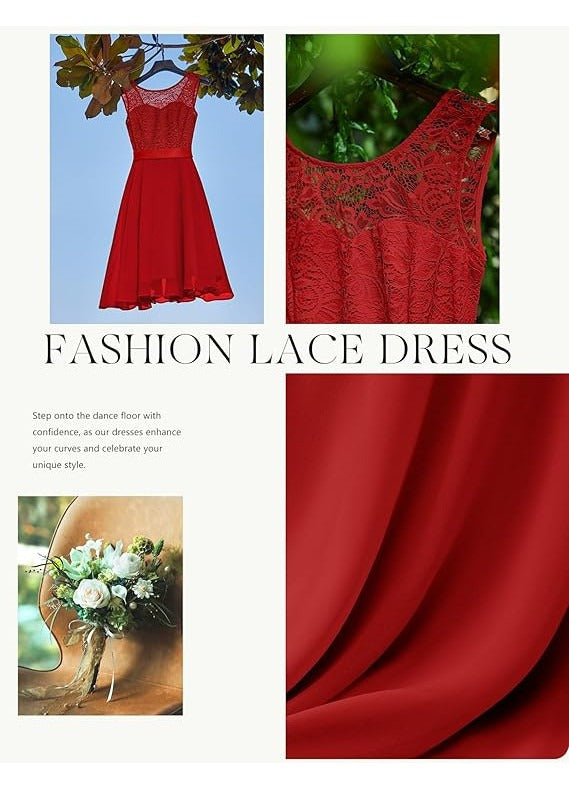Rochie cocktail dama BeryLove, marimea 2XL, dantela florala, A-line, culoare rosu