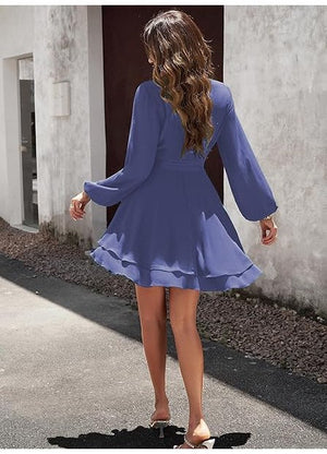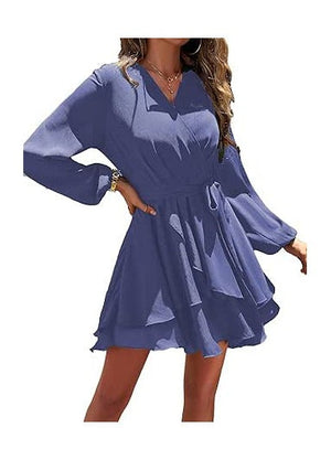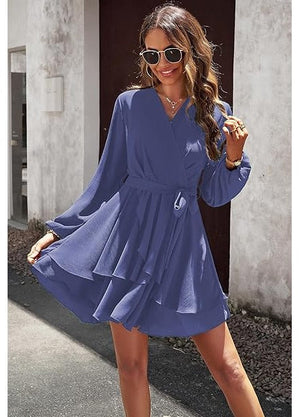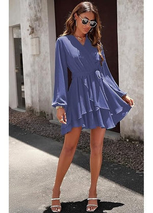 Rochie dama Jiraewh, poliester, decolteu in V, culoare albastru, marimea XL