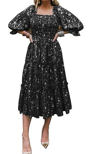 Rochie dama Ocean Plus, poliester, maneci bufante, negru, marimea S