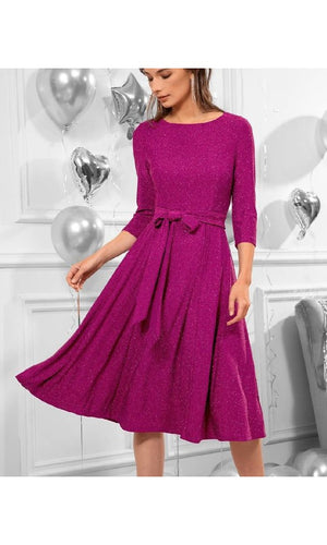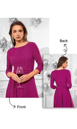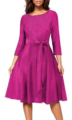 Rochie de cocktail pentru femei DRESSTELLS, maneci 3/4, sclipici, marimea S, culoare roz