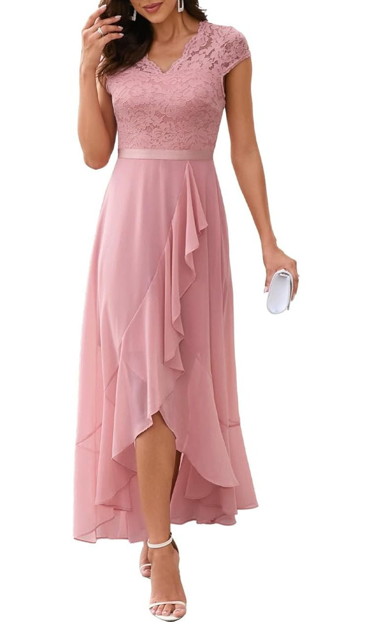 Rochie eleganta Bbonlinedress, marimea 2XL, Nylon, dantela, lunga, culoare roz