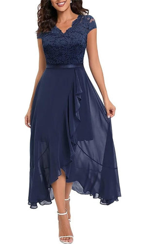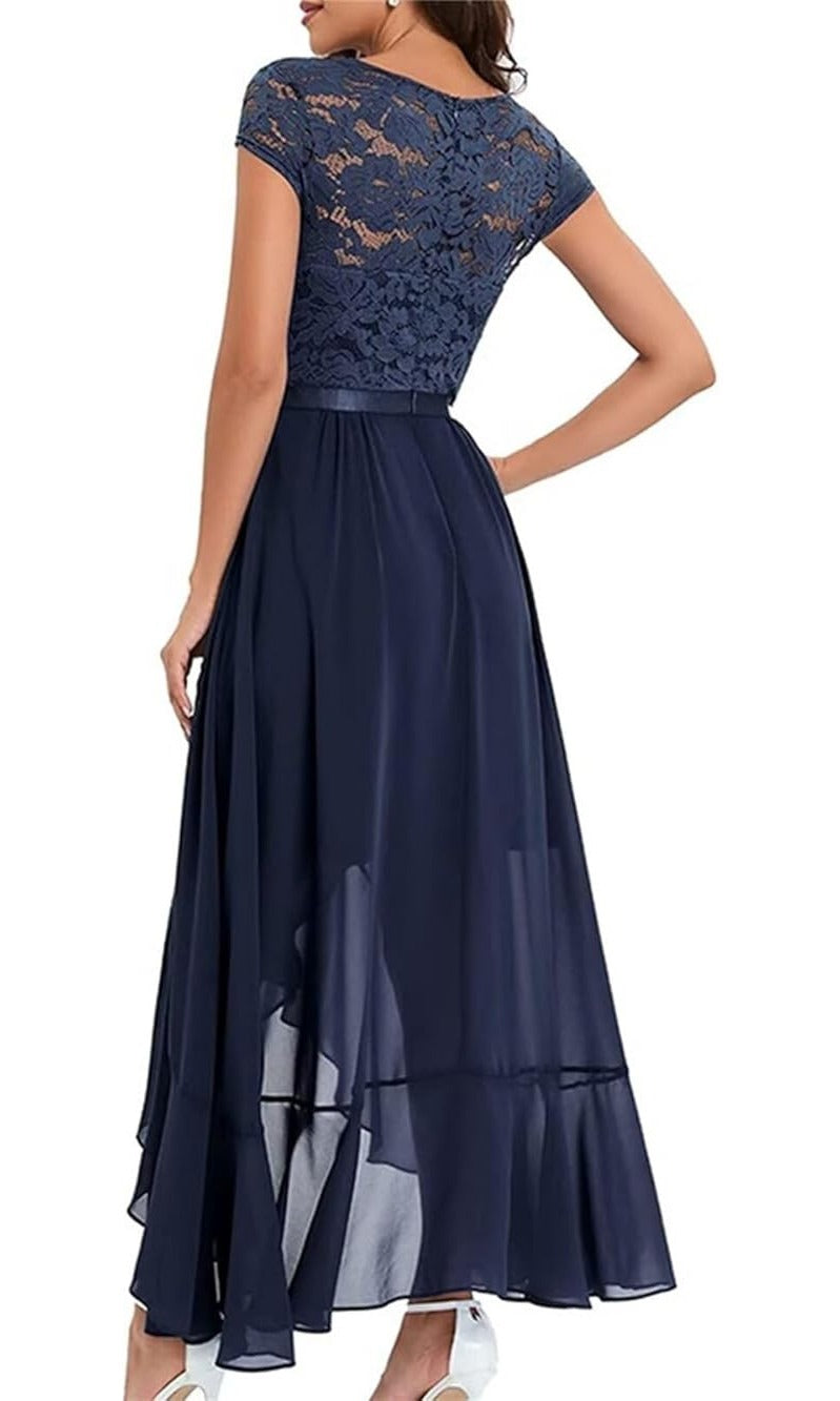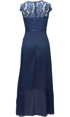Rochie eleganta Bbonlinedress, marimea L, cu dantela, lunga, culoare albastru inchis