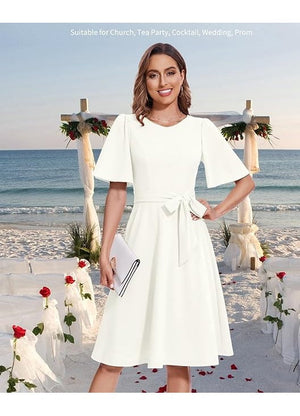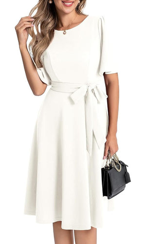 Rochie eleganta Bbonlinedress, marimea L, Nylon, maneci scurte, curea detasabila, culoare alb