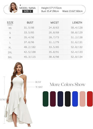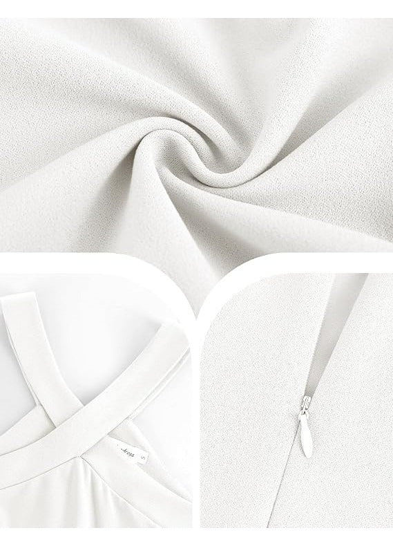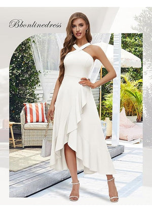 Rochie eleganta Bbonlinedress, marimea S, Poliamida, halter neck, asimetrica cu volane, culoare alba