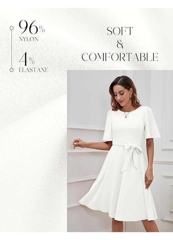 Rochie eleganta Bbonlinedress, marimea XL, Nylon, maneci scurte, curea detasabila, culoare alb