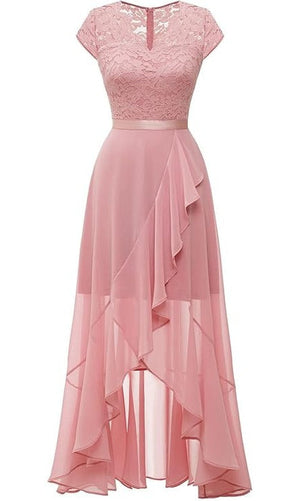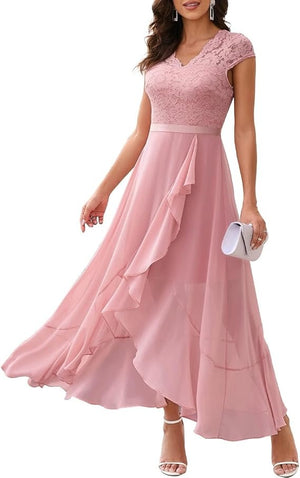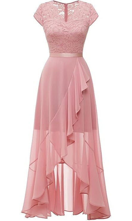 Rochie eleganta Bbonlinedress, marimea XXL, Nylon, dantela florala, lunga, culoare roz-pal