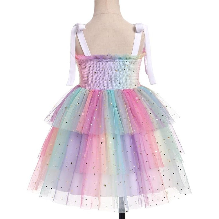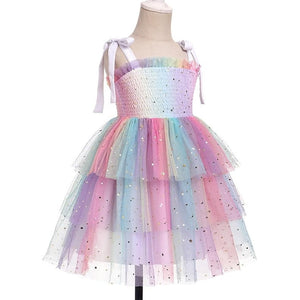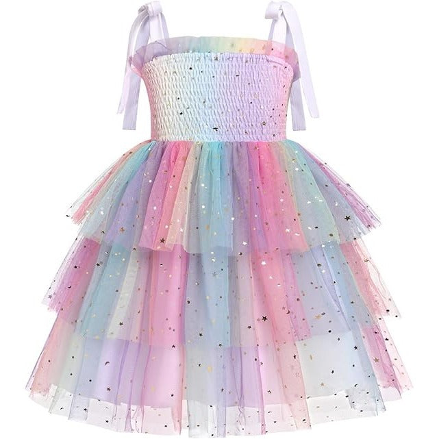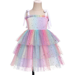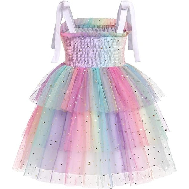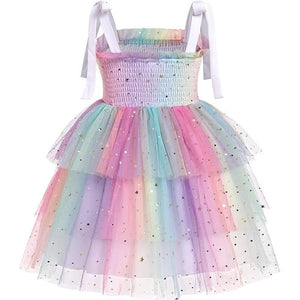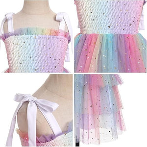 Rochie fetite FYMNSI, 12-18 luni, poliester, eleganta, bretele subtiri ajustabile, imprimeu curcubeu