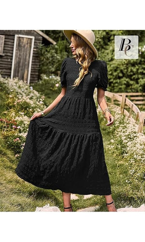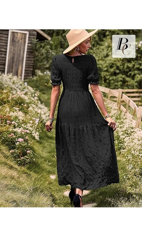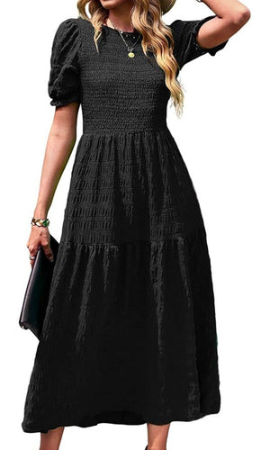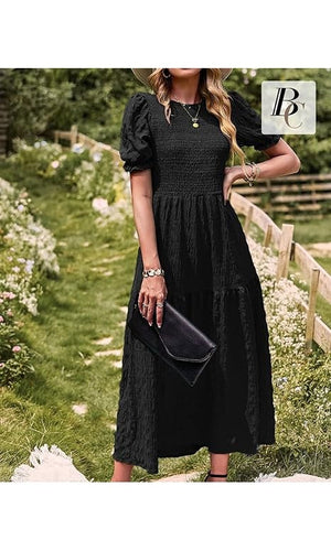 Rochie lunga BebreezChic, eleganta, maneci scurte, decolteu rotund, croiala in A, marimea M, culoare negru