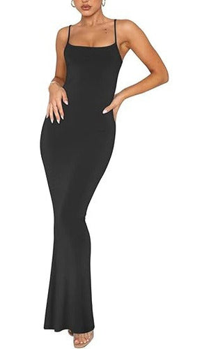 Rochie lunga REORIA, sexy si eleganta, fara maneci, cu spatele gol, stil slip, croiala mulata, marimea S, culoare negru