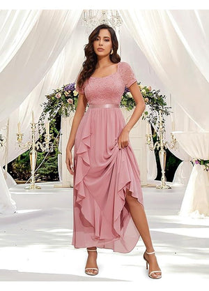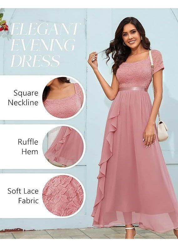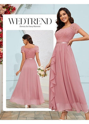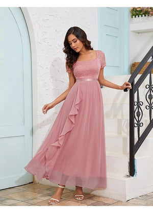 Rochie Lunga Wedtrend, Eleganta, Volane din Sifon, Croiala in A, Decolteu Patrat, marimea S, culoare Roz