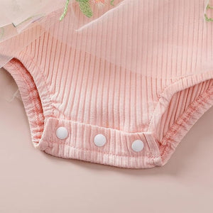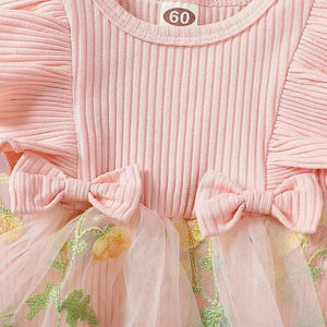 Rochita FYMNSI, stil printesa, 0-3 luni, cu broderie florala, culoare roz