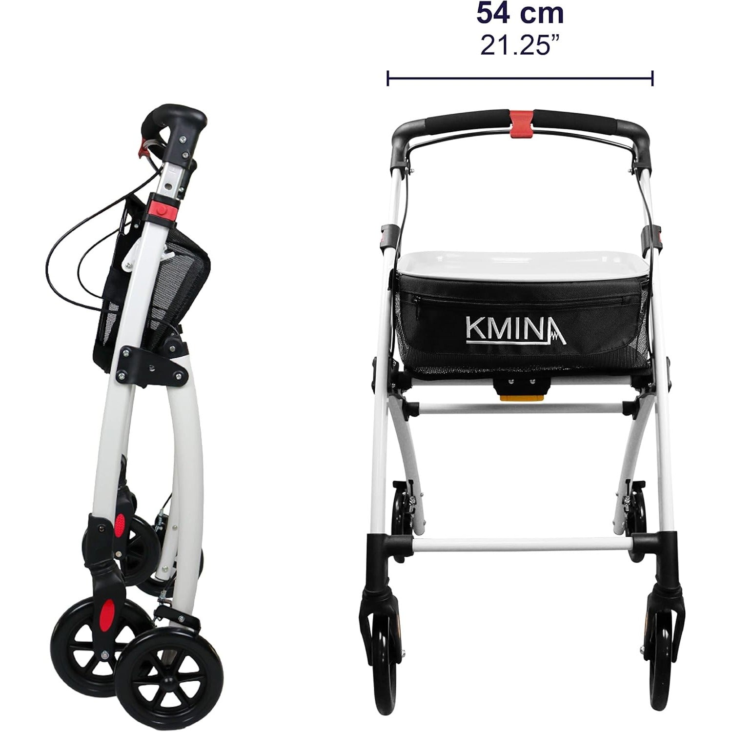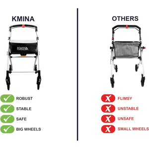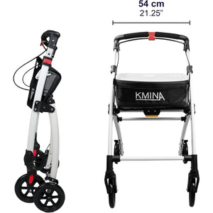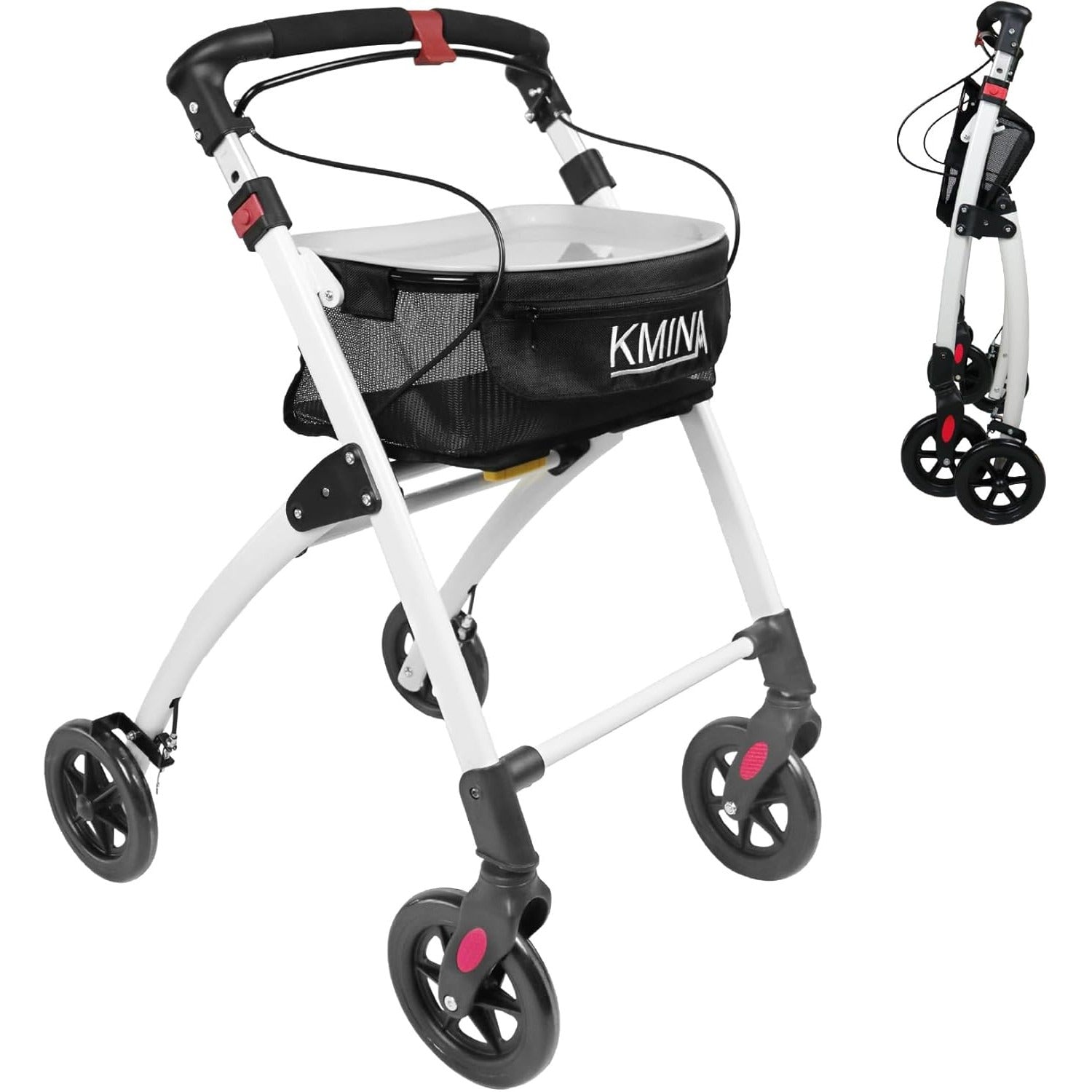 Rolator pliabil KMINA PRO, 4 roti, frane, cos si tava detasabila, reglabil pe inaltime, aluminiu, culoare negru