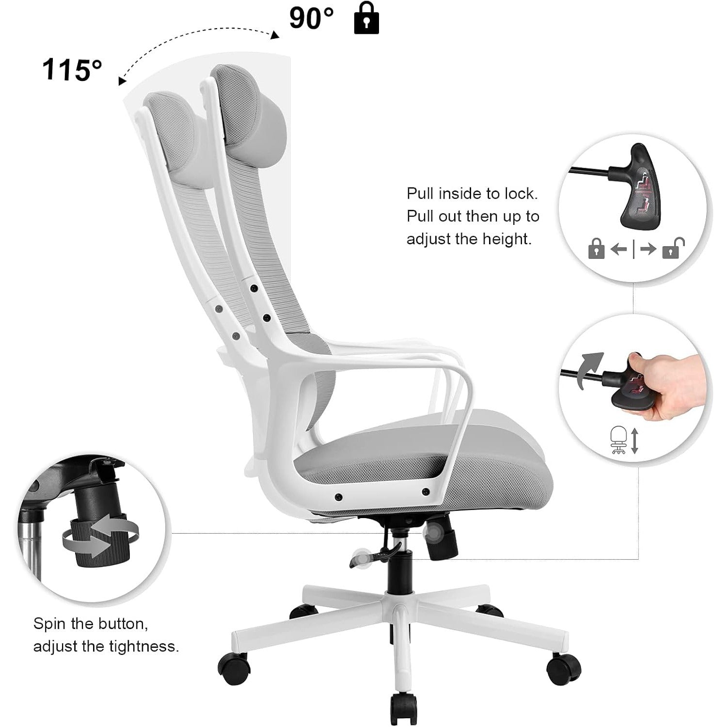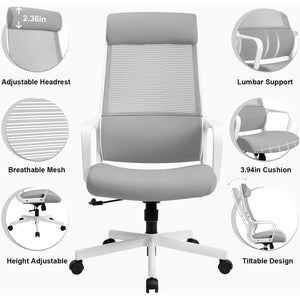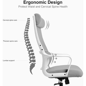 Scaun birou ergonomic MELOKEA, tetiera reglabila, suport lombar S, inaltime reglabila, plasa respirabila, sarcina 150 kg, culoare Gri