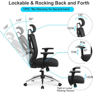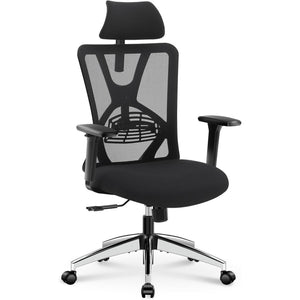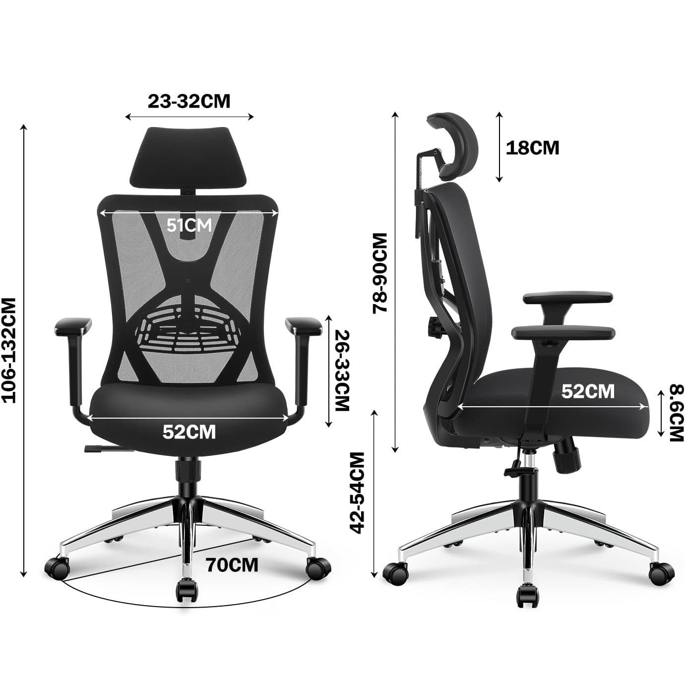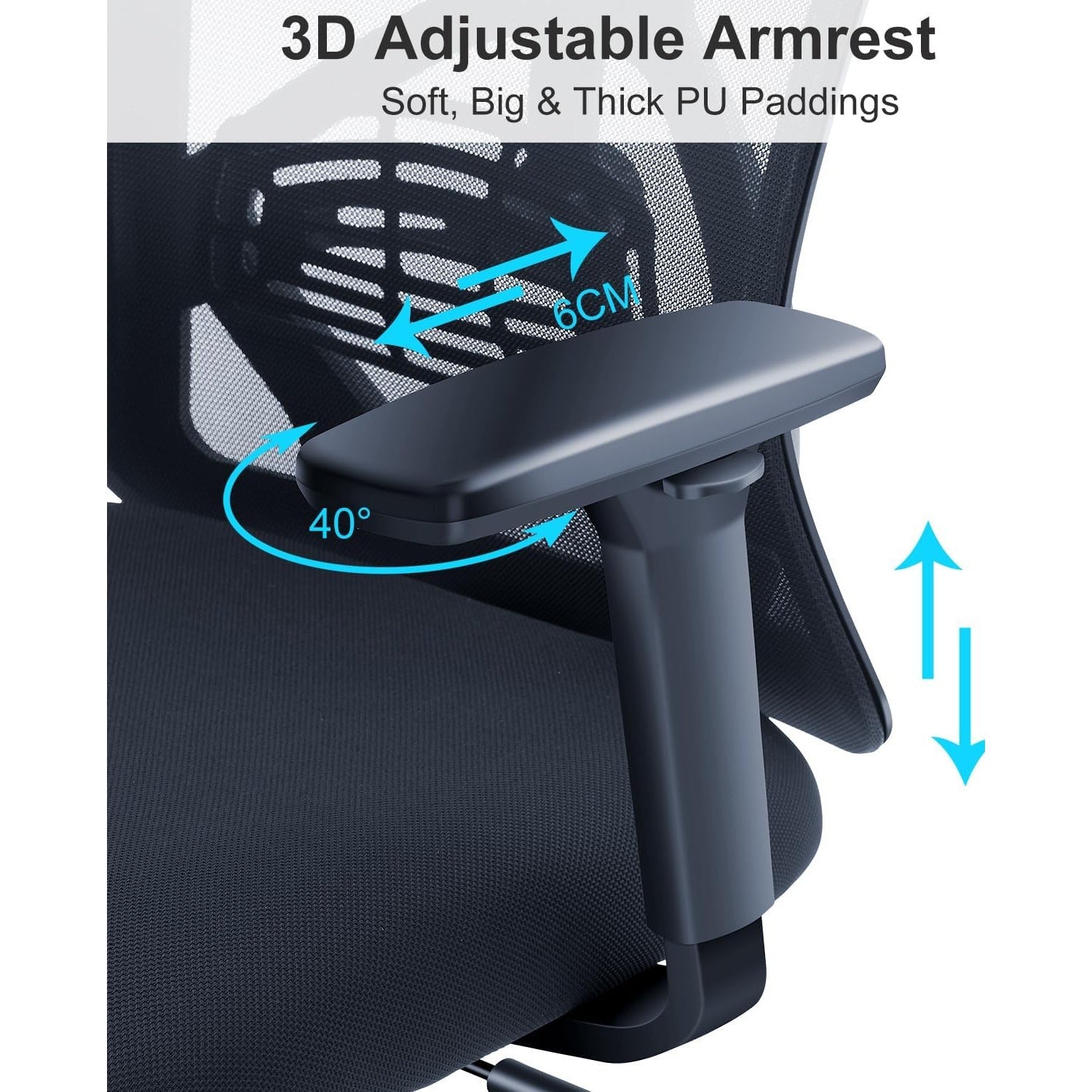 Scaun Birou Ergonomic Ticova, Suport Lombar Reglabil, Tetiera si Brate 3D, Mesh, 69x25x53 cm, Negru
