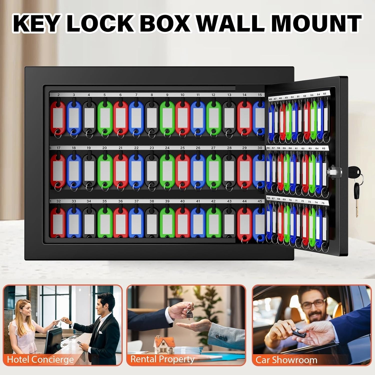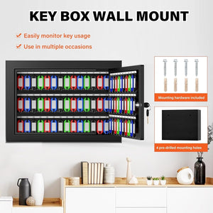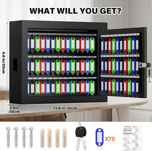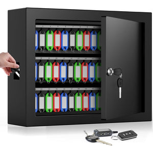 Seif depozitare chei Mejasg, 75 pozitii, 35x10x25 cm, antifurt, organizator chei, cu montaj pe perete, culoare negru