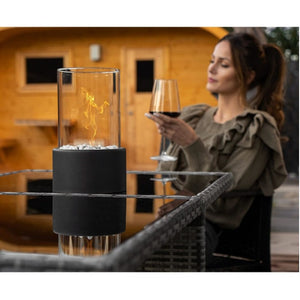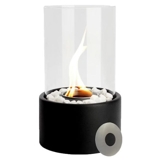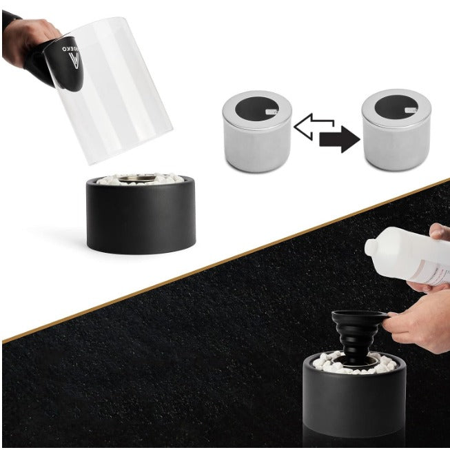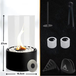 Semineu de Masa cu Etanol ANDEKO, timp ardere de 3 ore, include pietre decorative albe, sticla de siguranta inalta, flacara reglabila, culoare negru