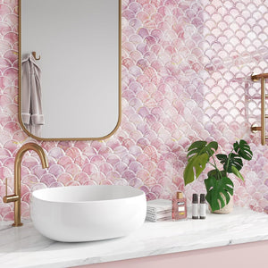 Set 12 folii autocolante VEELIKE, model solzi de peste, roz marmura, 30x30 cm