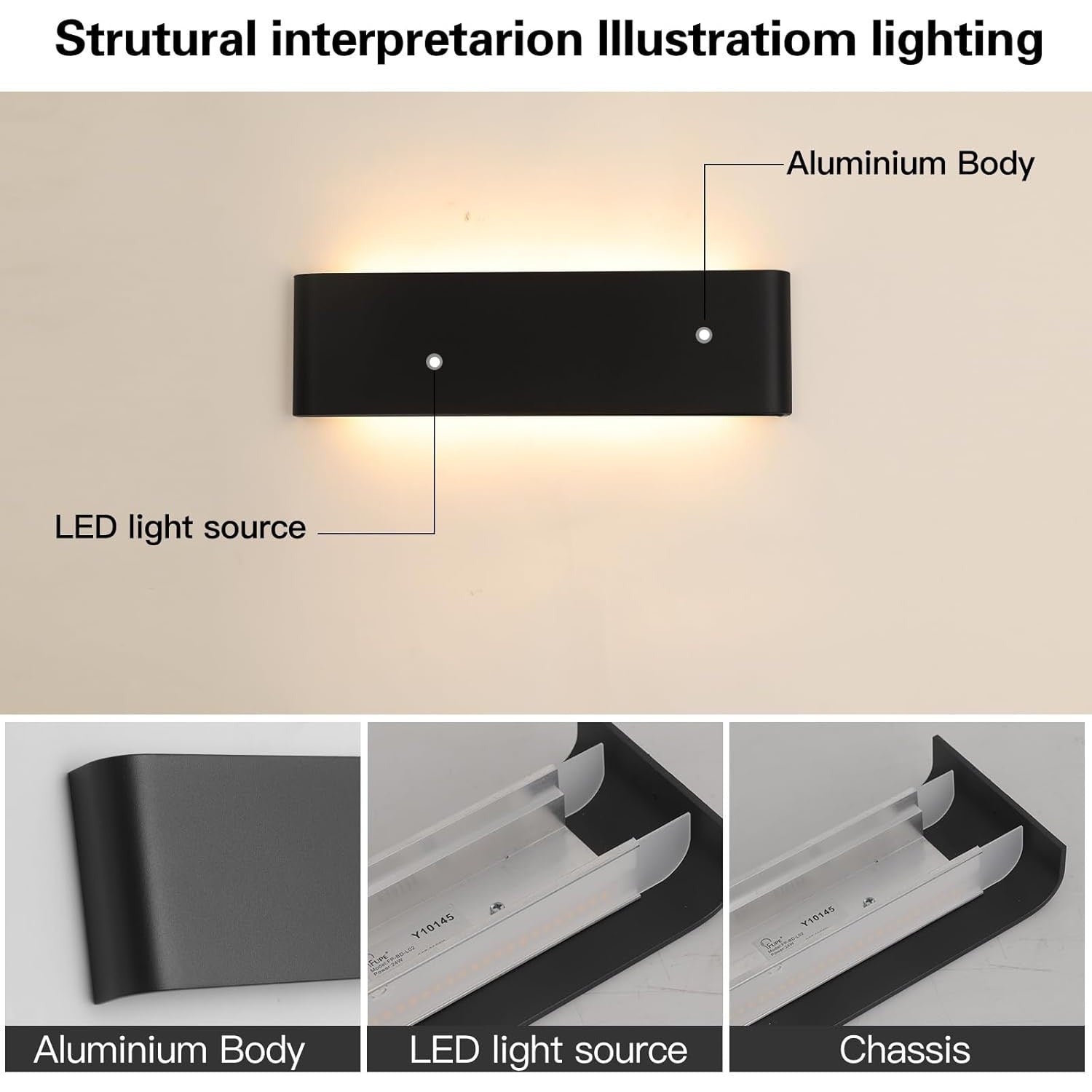 Set 2 Aplice LED Mille Lucciole, 18W, 31 cm, Aluminiu, 2160LM, 3000K/4000K/6500K, Negre