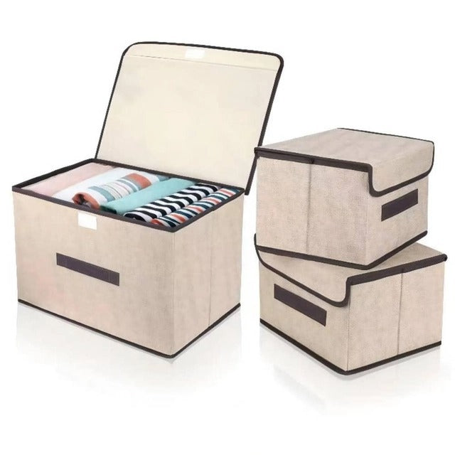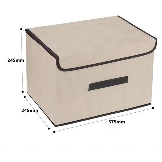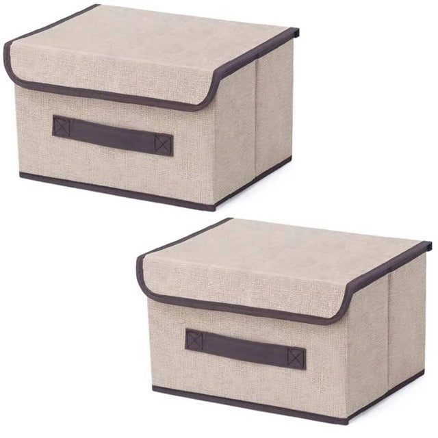 Set 2 cutii depozitare AURMOO, material textil si carton PP, 24x24x37 cm, pliabile, cu capac, manere, multifunctionale, bej si maro
