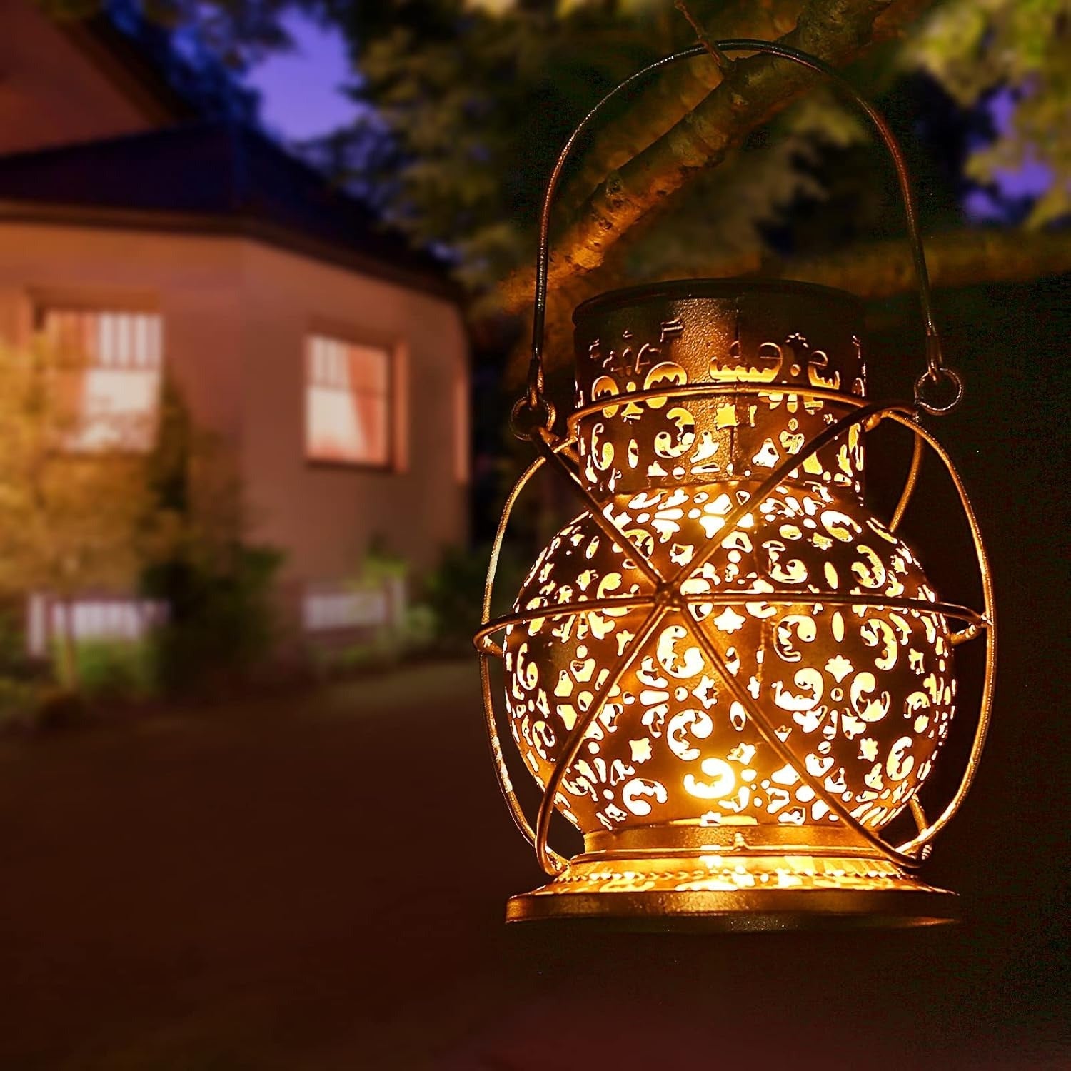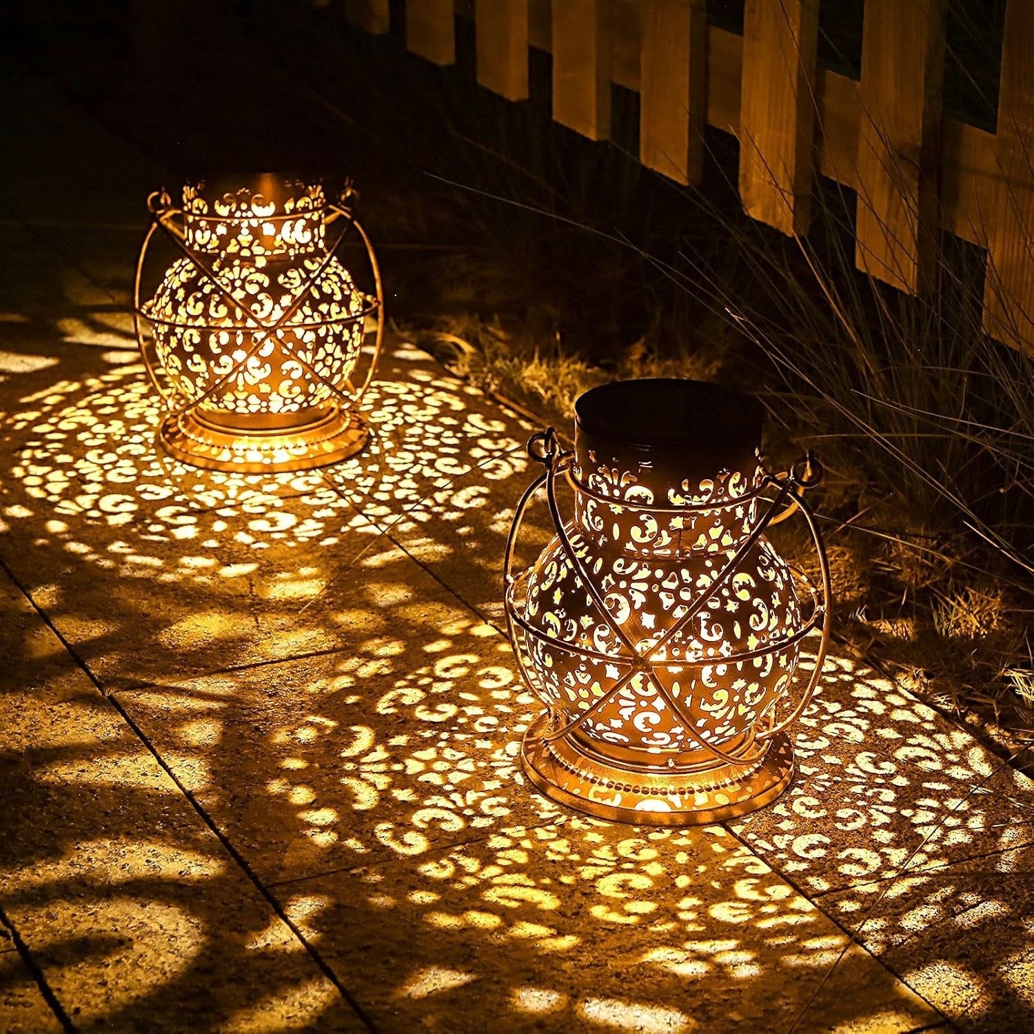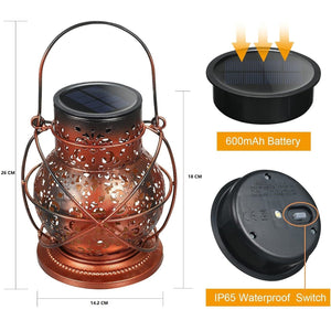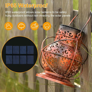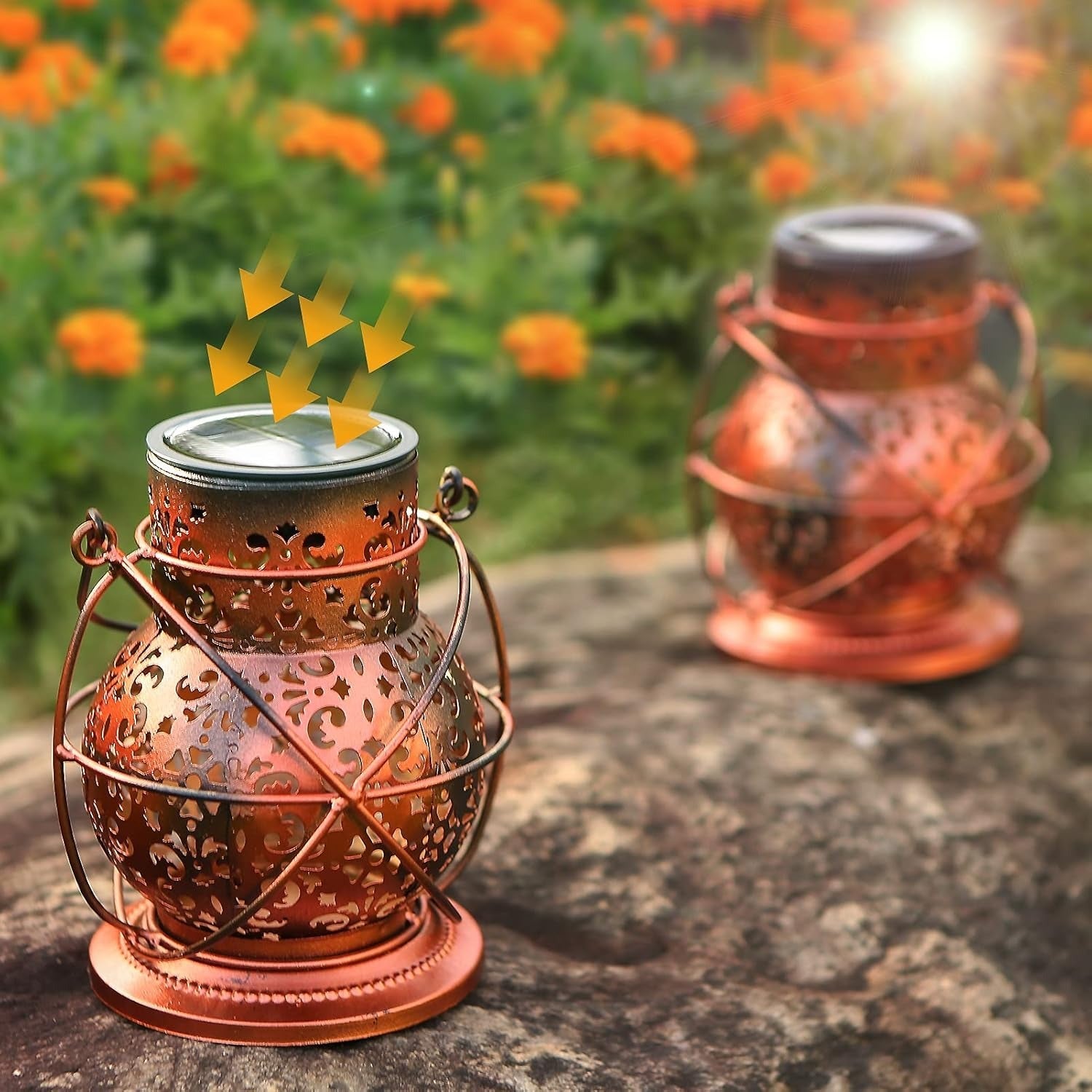 Set 2 felinare solare JOYCREATOR, metalice, IP65 impermeabile, design retro, LED lumina calda, maner pentru agatare