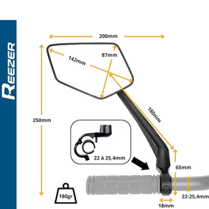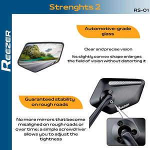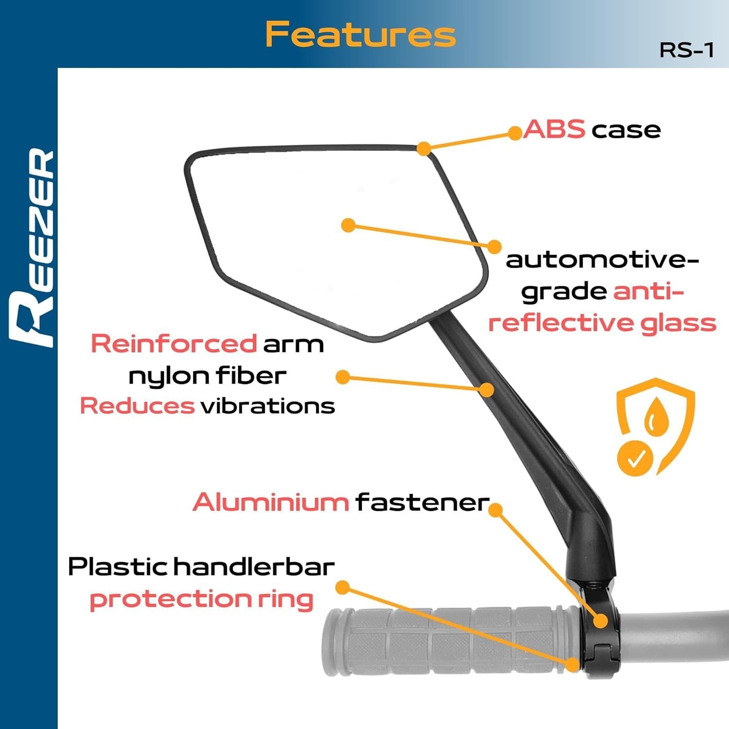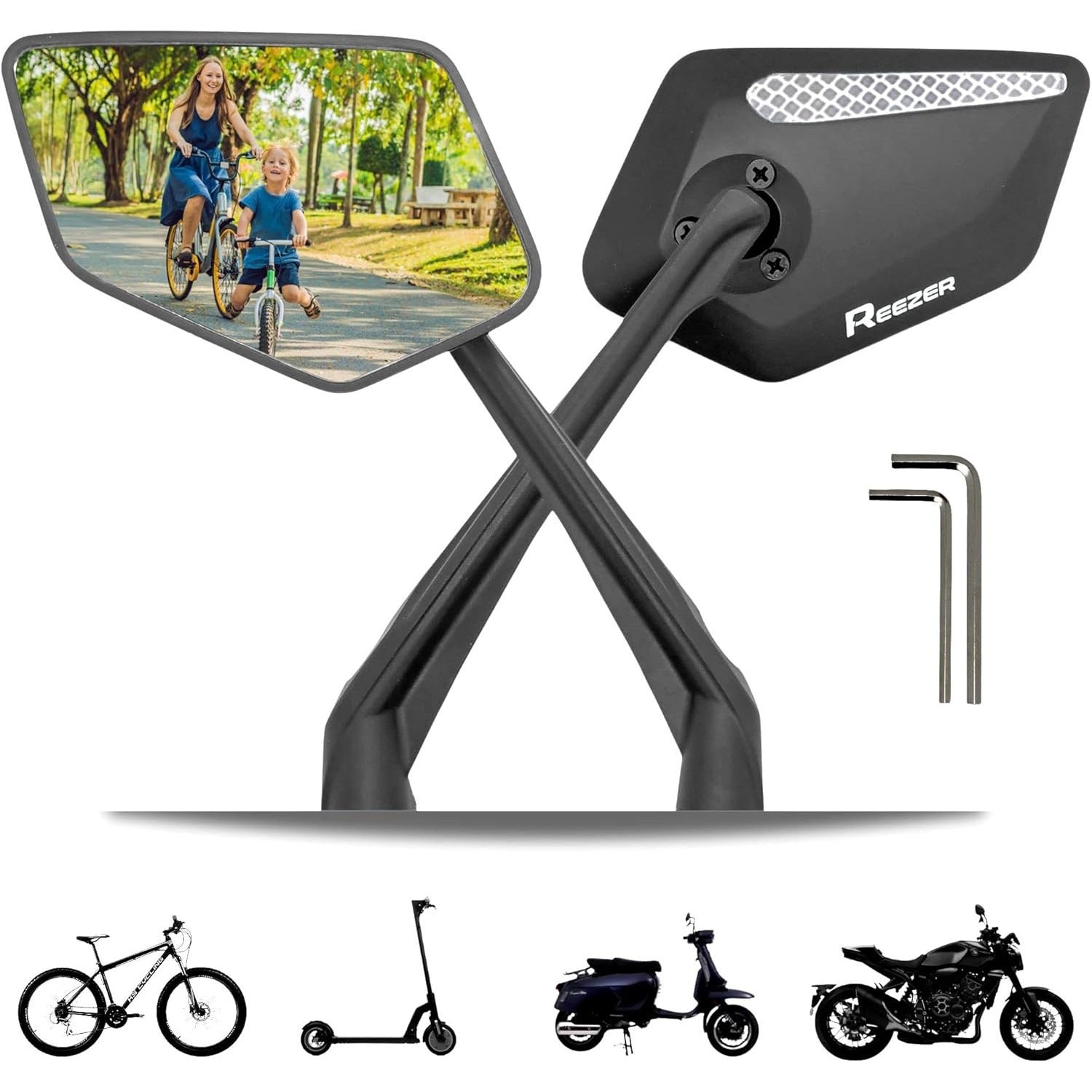 Set 2 oglinzi bicicleta REEZER, montare pe ghidon, rotatie 360°, sticla auto convexa, universale, negru