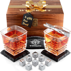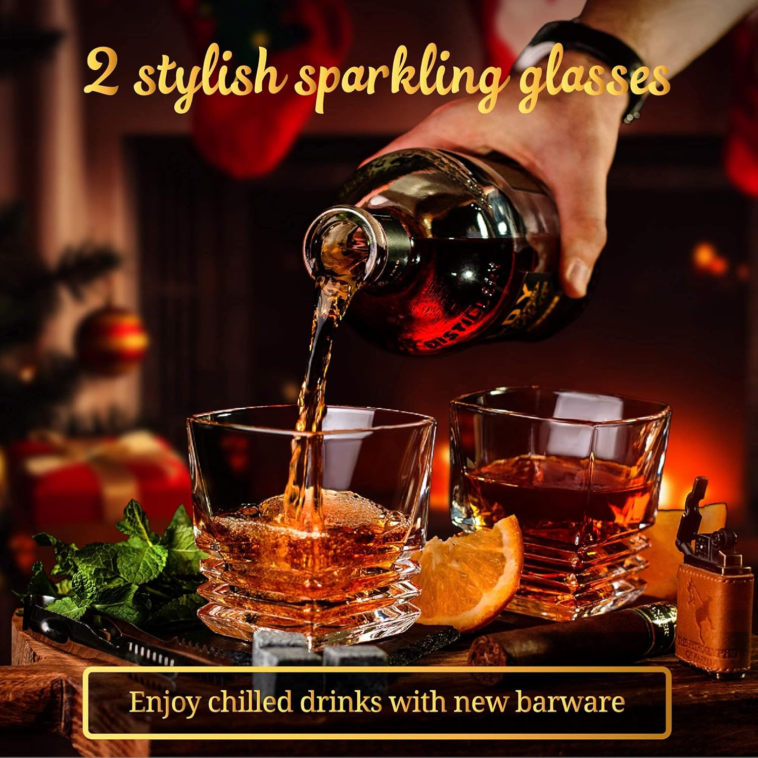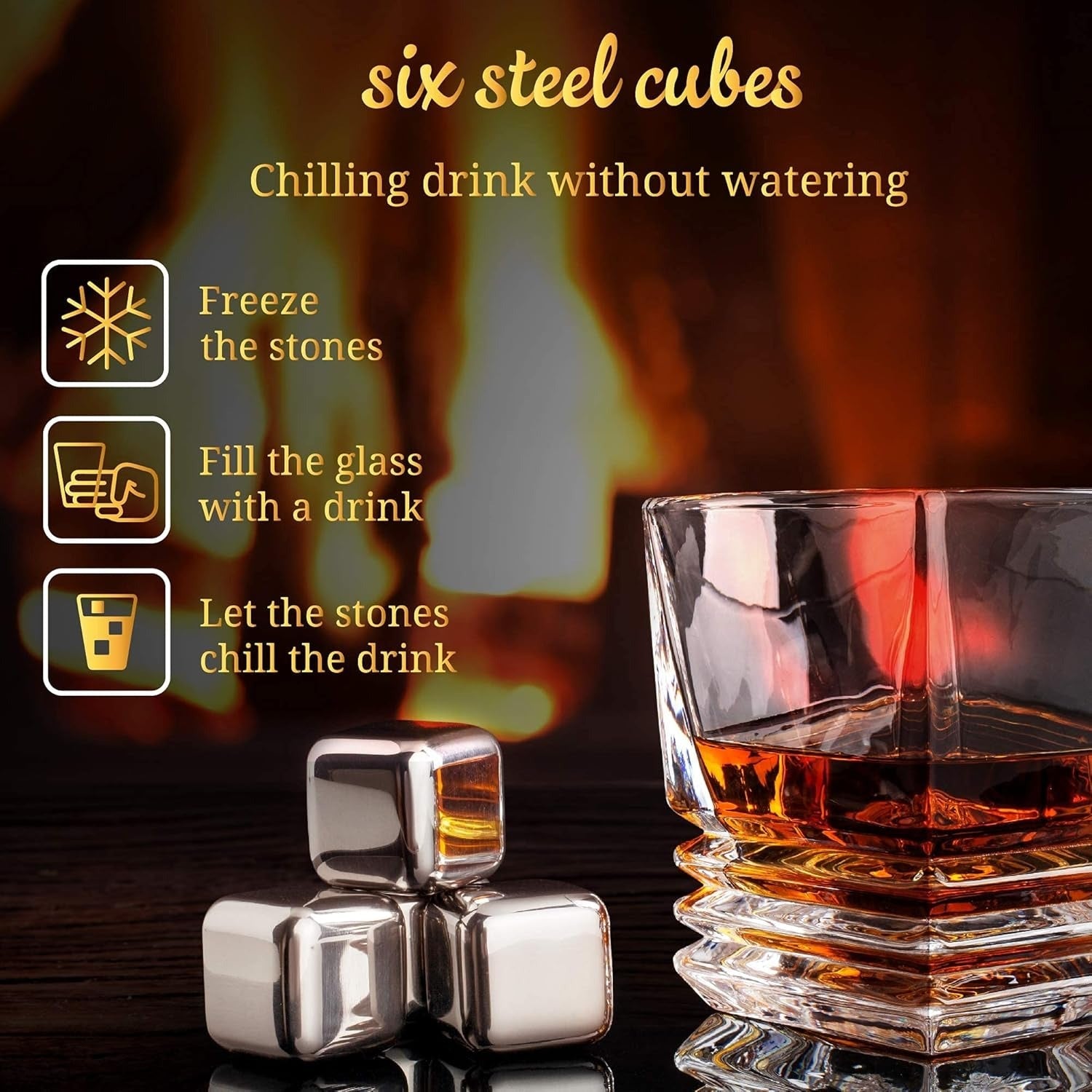 Set 2 Pahare de Whisky WHISKOFF, Set cu 6 cuburi de gheata, 300 ml, Cristal, Elegante, culoare Maro