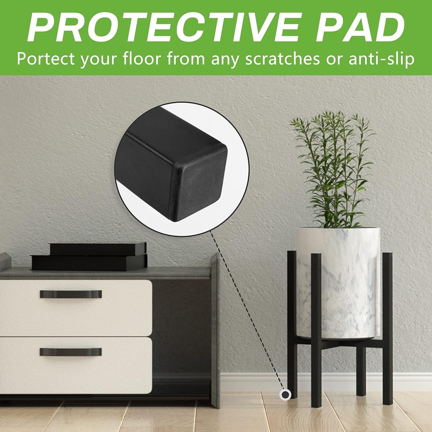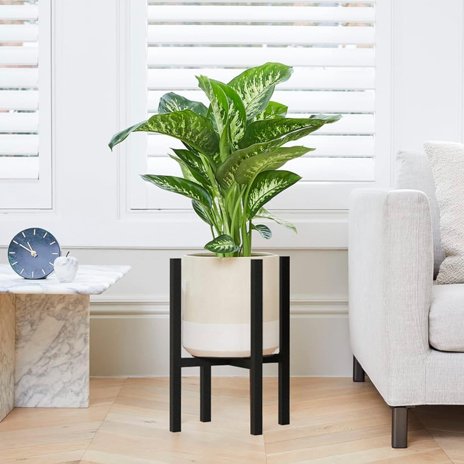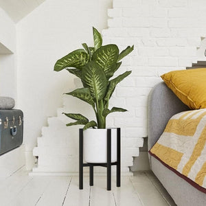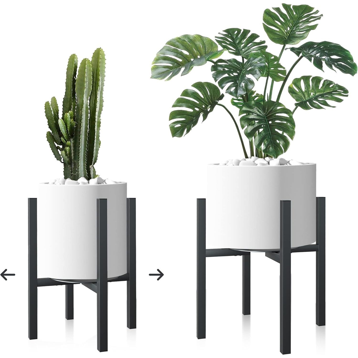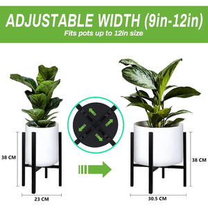 Set 2 suporturi pentru ghivece CADANI, reglabile, metalice, picioare anti-alunecare, stil mid-century, culoare negru