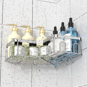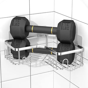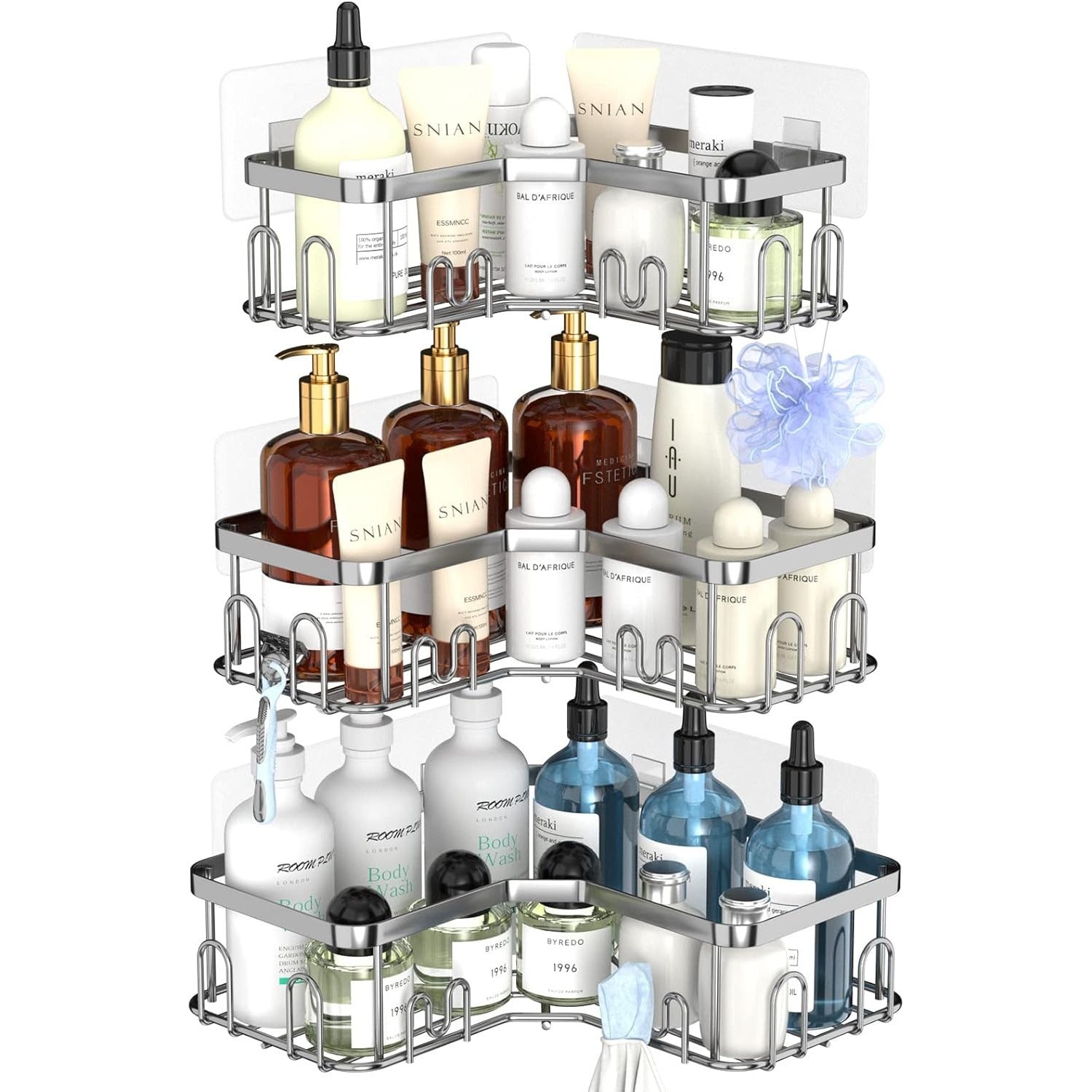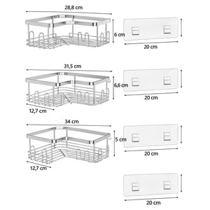 Set 3 rafturi colt dus Menbyci, inox anticoroziv, autoadezive, cu 18 carlige, finisaj lucios, argintiu