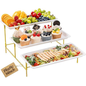 Set 3 tavi servire Lifewit, 3 nivele, 30x16 cm, pliabile, rotative, plastic, suport metalic, culoare negru si alb