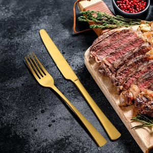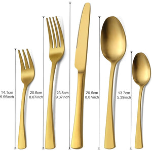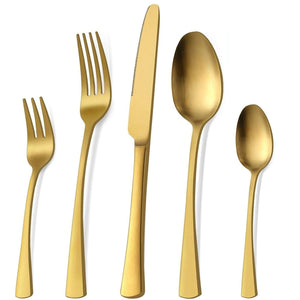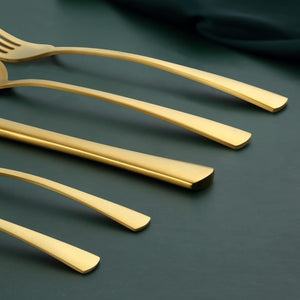 Un set complet si rafinat, perfect pentru familie sau ocazii speciale, cu finisaj auriu mat si design modern. Fabricat din otel inoxidabil durabil, ofera stil si rezistenta in orice bucatarie.