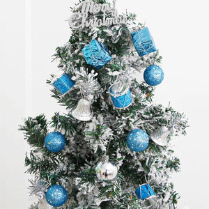 Transforma bradul de Craciun intr-un colt festiv elegant cu acest set complet de ornamente in nuante de albastru si argintiu, ideale pentru braduti mici sau pentru completarea decoratiunii principale.