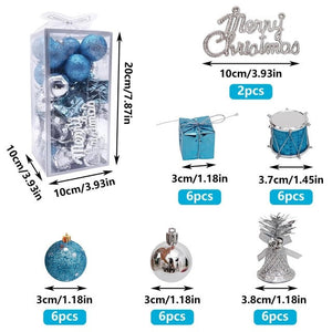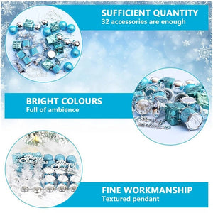 Set 32 decoratiuni Craciun – Globuri si figurine mini, albastru si argintiu, 3 cm