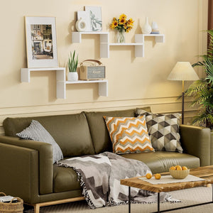 Set 5 rafturi suspendate SRIWATANA, lemn masiv, 5 dimensiuni, montaj pe perete, design modern, alb