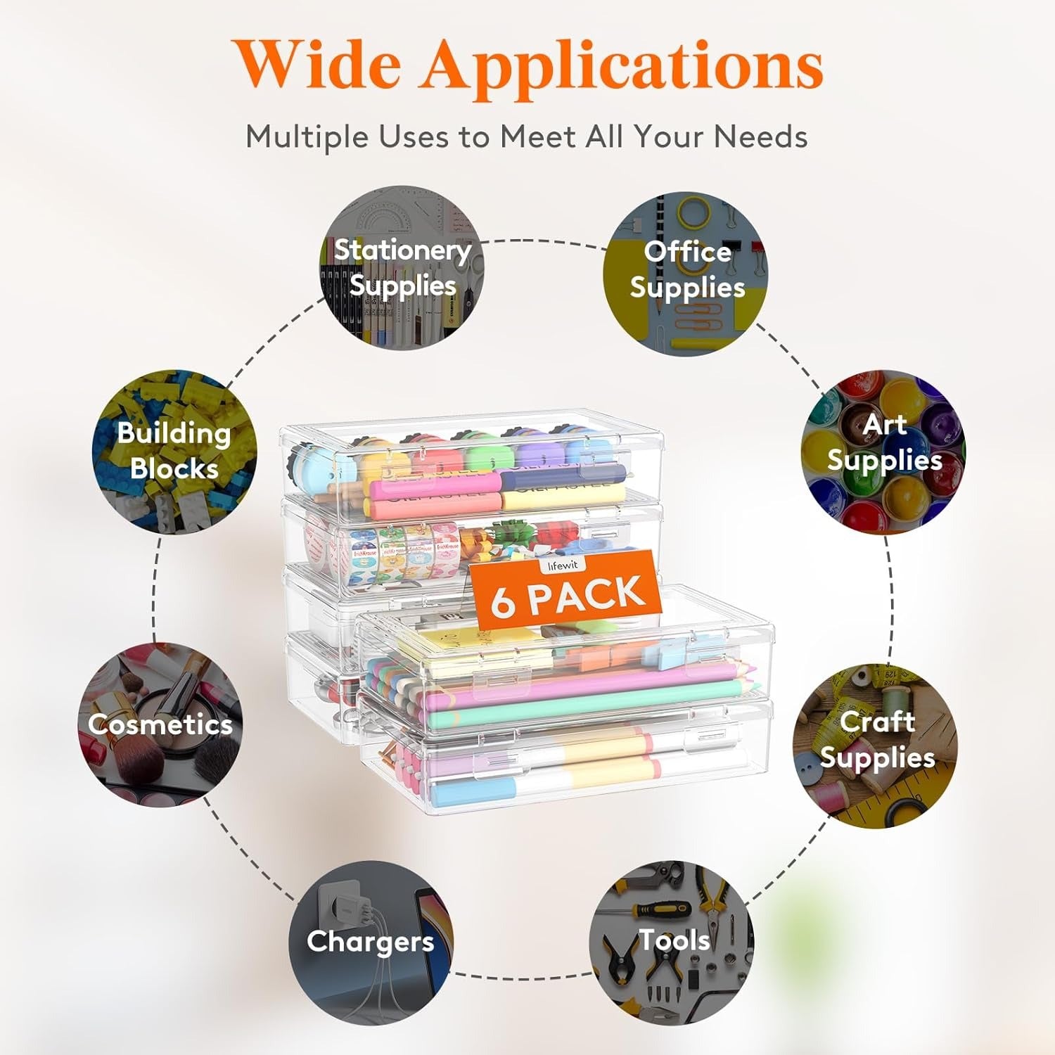 Set 6 cutii organizatoare Lifewit, plastic, 20x12x4 cm, capac etans, versatile, transparent