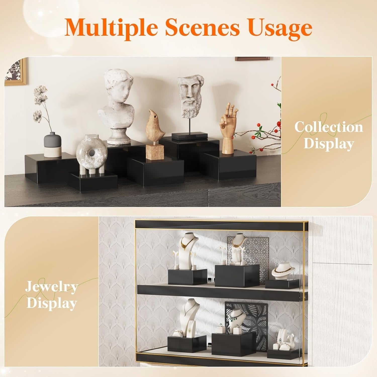 Set 6 suporturi de prezentare cubice Lifewit, acrilic, 20x20x12, 7 cm, versatile, reutilizabile. negru